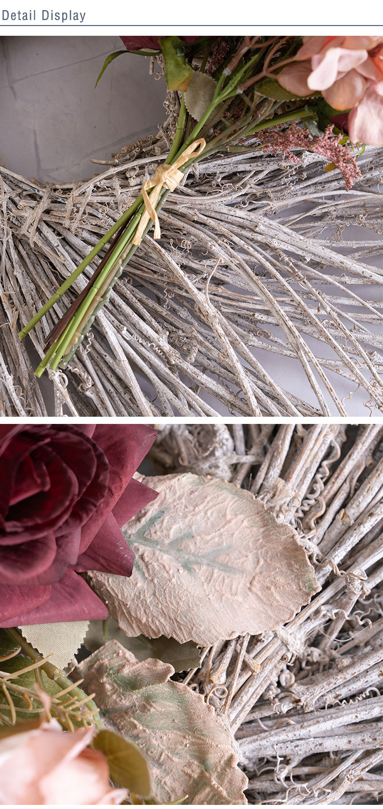 অধিকন্তু, 80% ফ্যাব্রিক, 10% প্লাস্টিক এবং 10% লোহা সহ উচ্চ-মানের সামগ্রীর ব্যবহার নিশ্চিত করে যে এই বিন্যাসটি টেকসই এবং চেহারাতে বাস্তবসম্মত। এটির কোন বিশেষ যত্ন বা রক্ষণাবেক্ষণের প্রয়োজন নেই, যা আপনাকে কোন ঝামেলা ছাড়াই এর সৌন্দর্য উপভোগ করতে দেয়। অন্তর্ভুক্ত আনুষাঙ্গিক, যেমন হাইড্রেনজা ফুল, লাভপ্ল্যান্টস, রোজমেরি এবং ইউক্যালিপটাস শাখা, সামগ্রিক নকশায় আরও গভীরতা এবং গঠন যোগ করে।