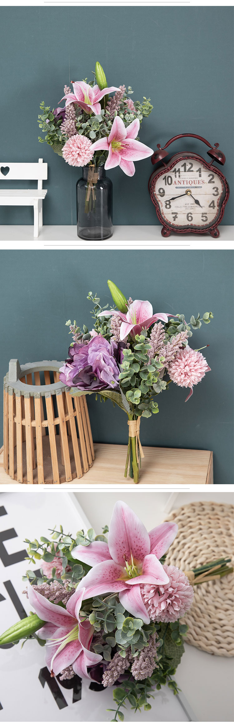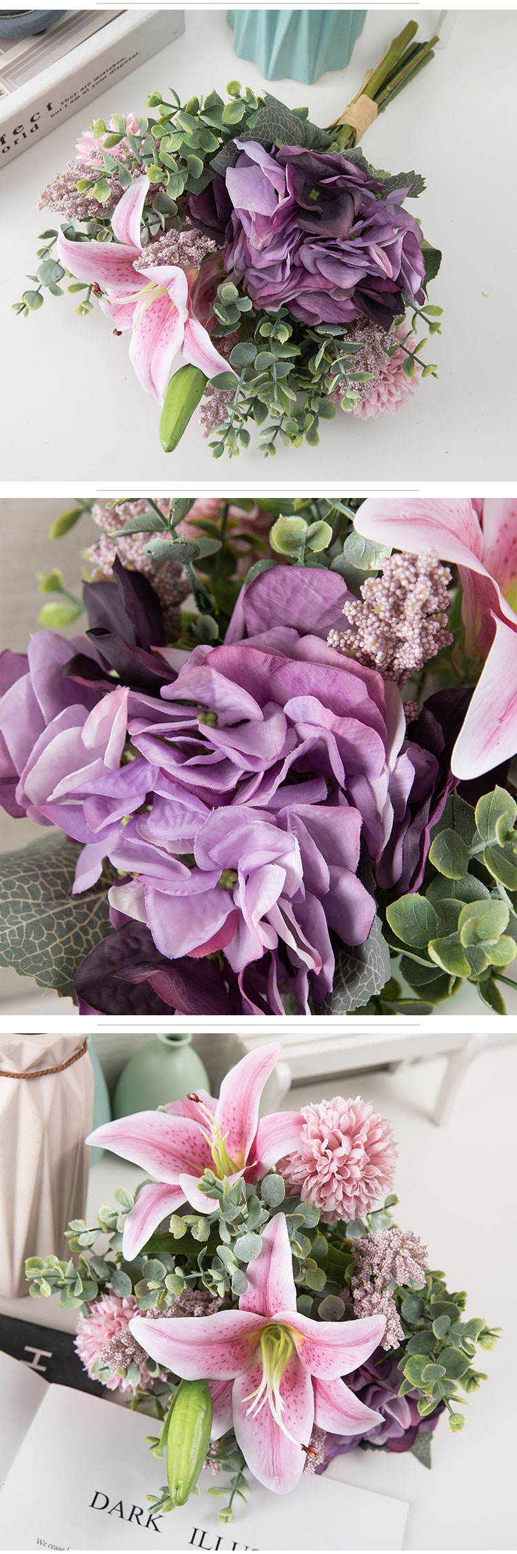 CF01046 Artipisyal nga Bulak nga Bouquet Hydrangea Lily Dandelion Bouquet Bag-ong Disenyo nga regalo sa Valentine's Day