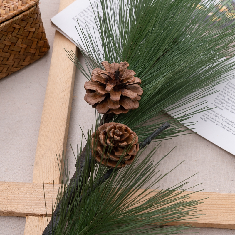 Gipresyohan isip usa ka sanga, ang matag Pine Needle Branch naglangkob sa daghang mga pine needles ug natural nga mga pine cone, nga nagsiguro sa igong coverage ug visual interest.Bisan kung gigamit nga nag-inusara o sa kombinasyon sa ubang mga dahon, kini nga mga sanga nagdugang giladmon ug texture sa bisan unsang pagkahan-ay sa bulak.