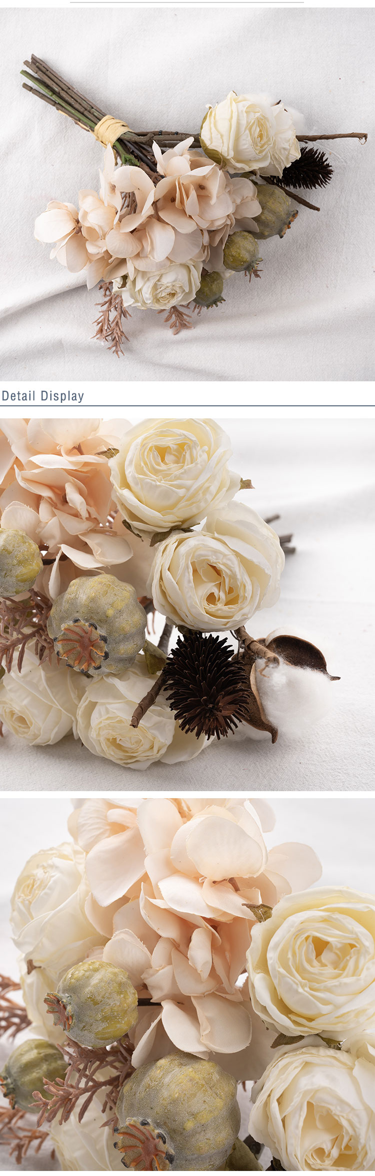 CF01004 Artificial Flower Bouquet Rose Hydrangea Poppy Cheap Wedding Centerpieces