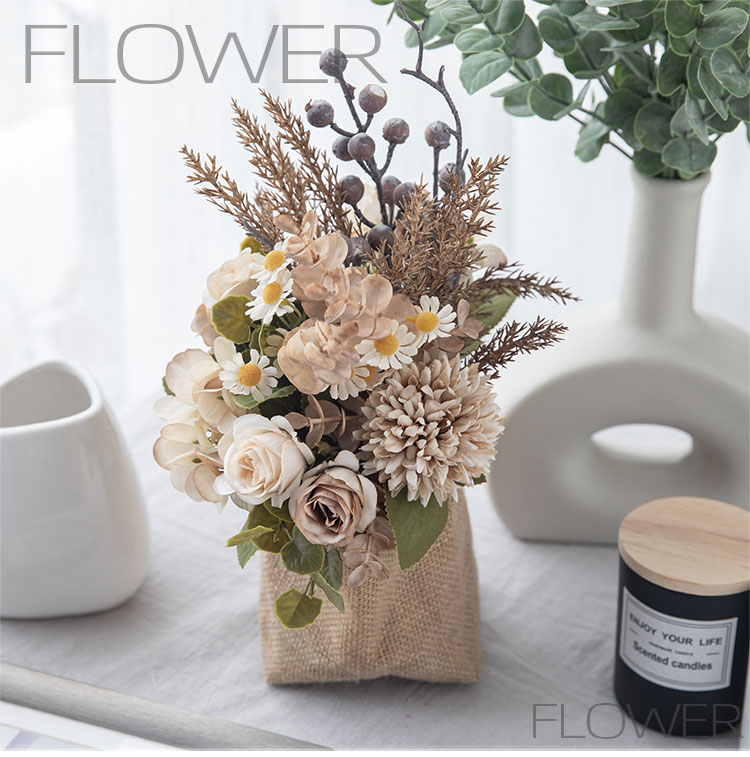 CF01146 Artificial Dandelion Rose Hydrangea Daisy Bouquet New Design Decorative Flowers and Plants