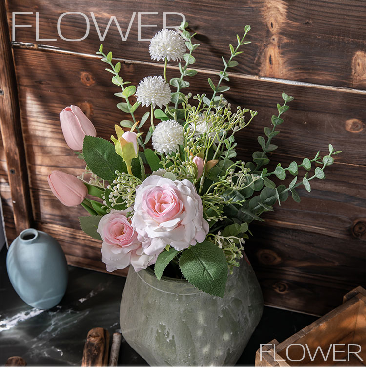Welcome to our beautiful collection of artificial flowers! We are excited to introduce our latest addition, Item No. CF01182, the Artificial Rose Tulip Dandelion Bouquet. This stunning bouquet is made of high-quality fabric and plastic, and is the perfect decoration to add a touch of elegance to any room or occasion.