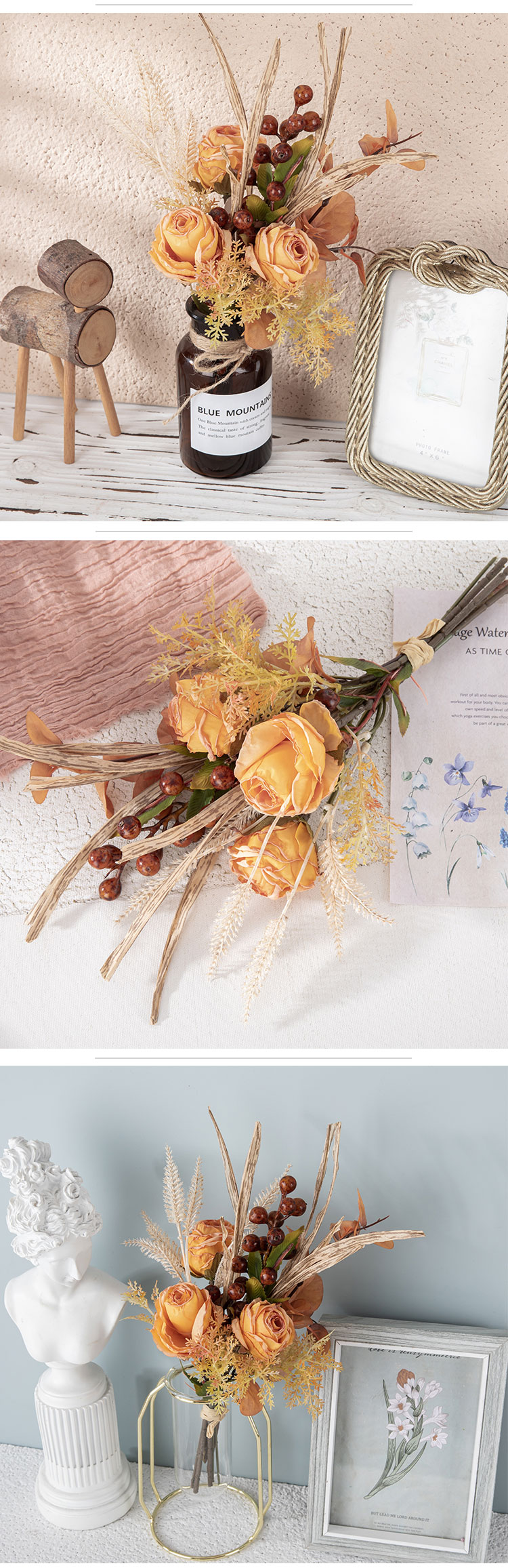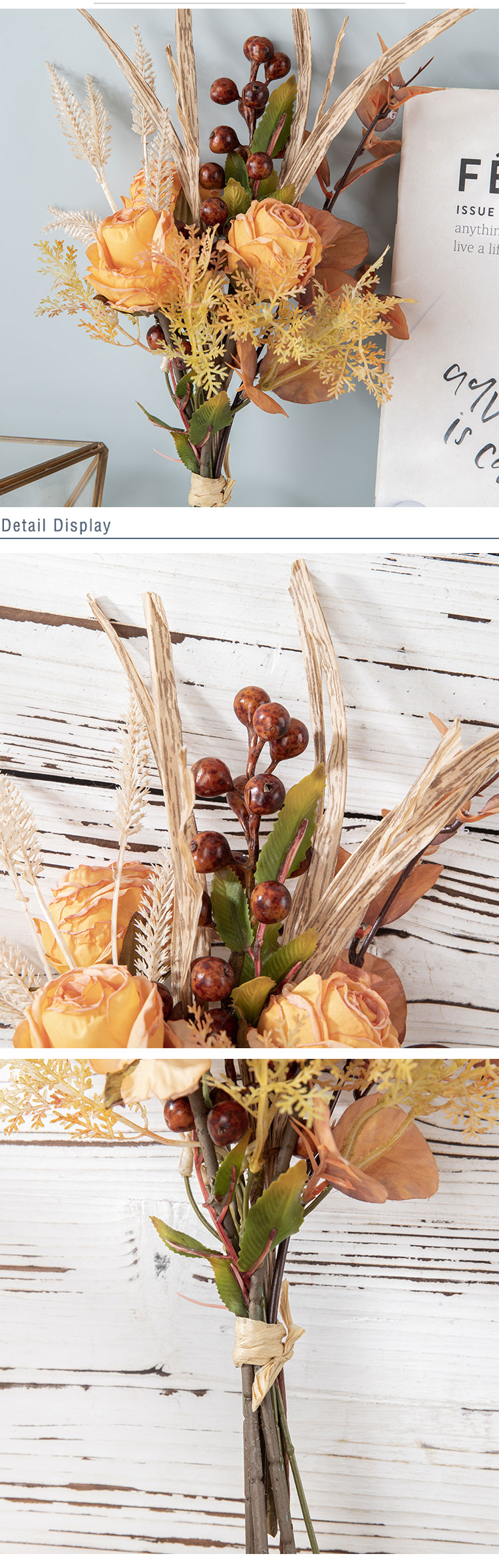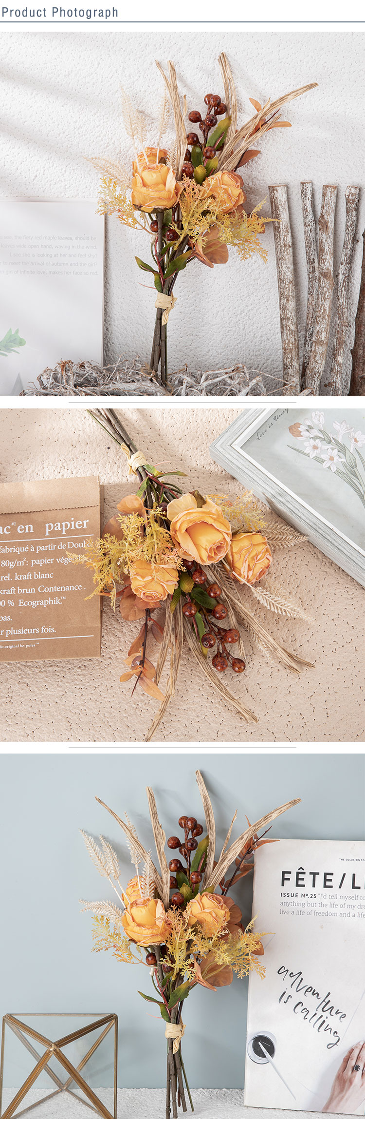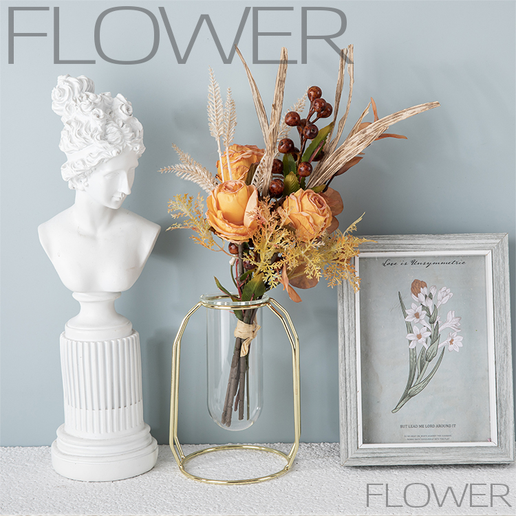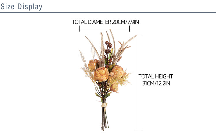 CF01222 Artificial Fabric Flower Bouquet Dry Roasted Light Orange Rose Bouquet for Home Party Wedding Decoration