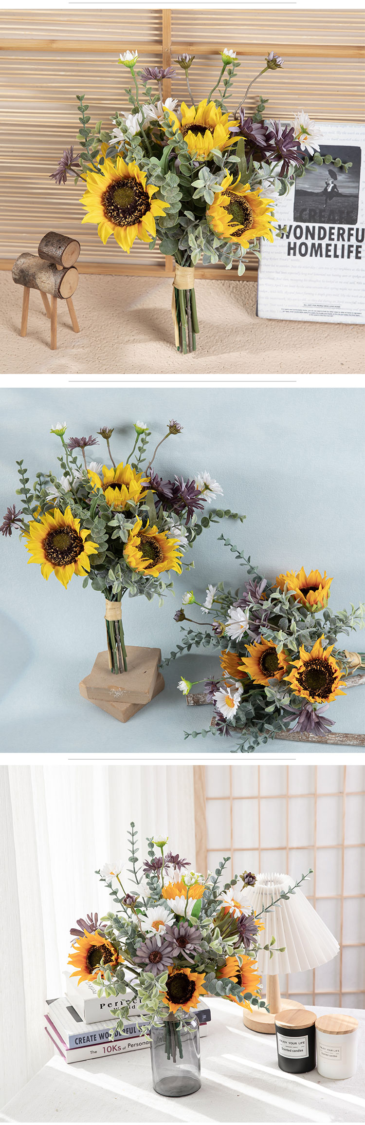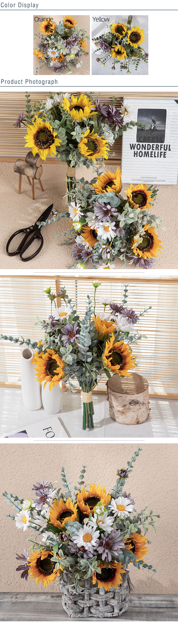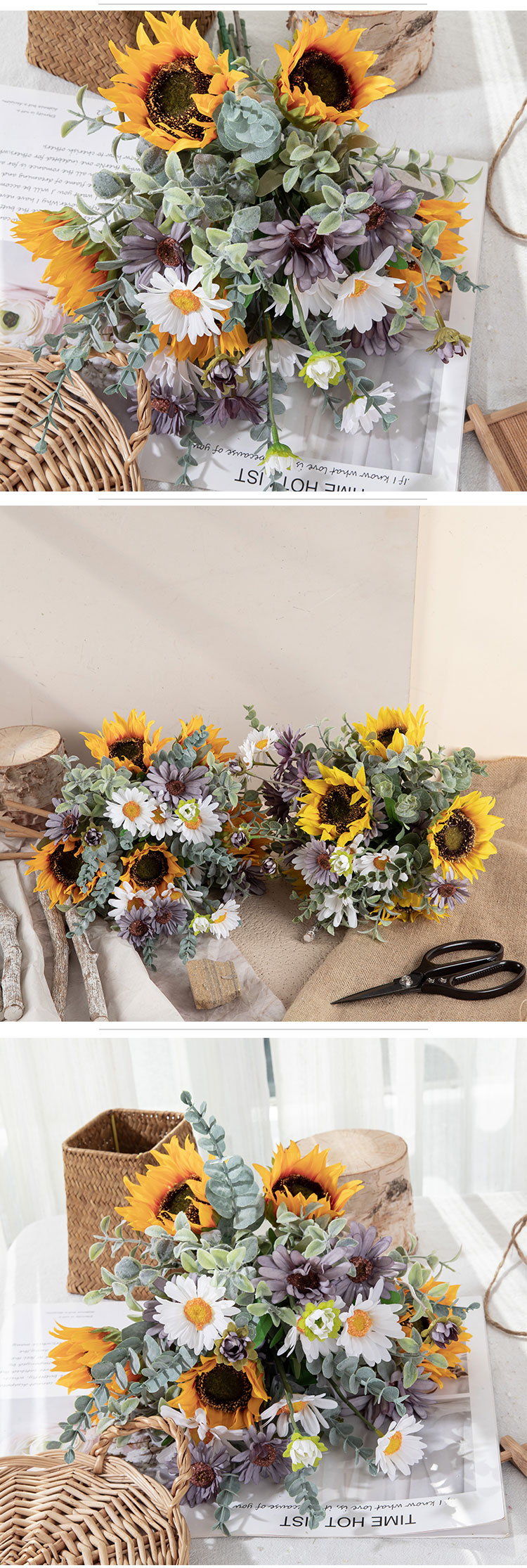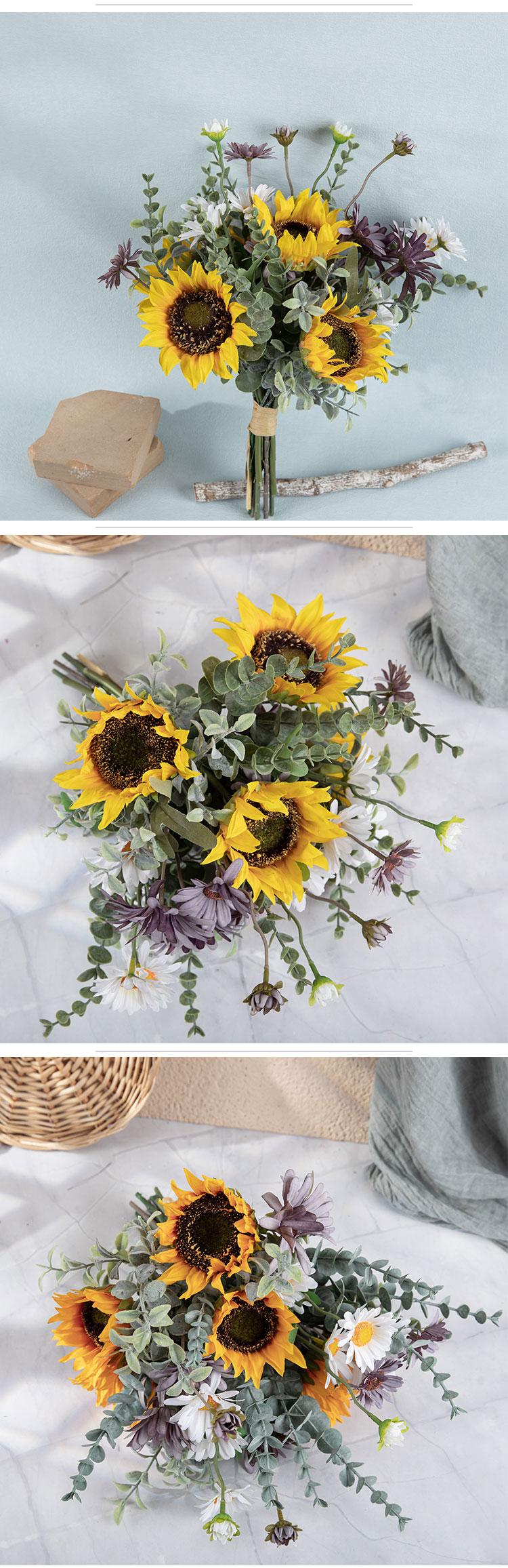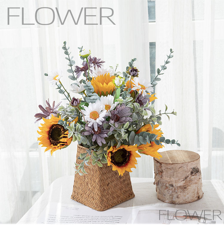 CF01266 Artificial Flower Bunch Sunflower Daisy Bunch Gift Bouquet for Tables Vase Wedding Decorations Flower Arrangements