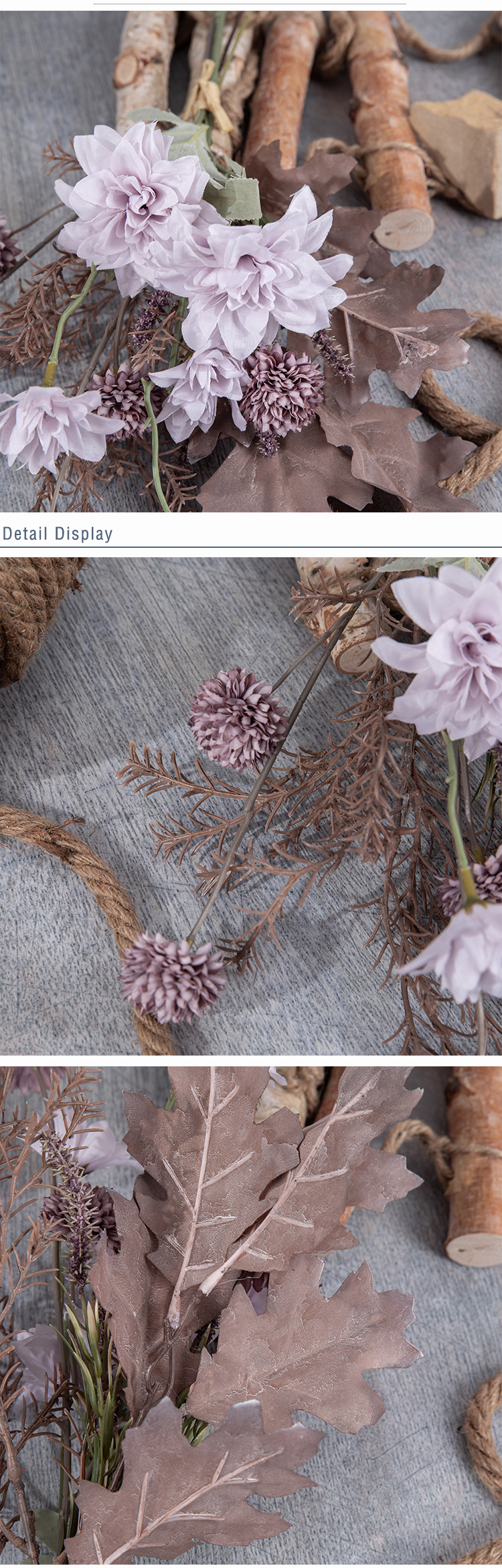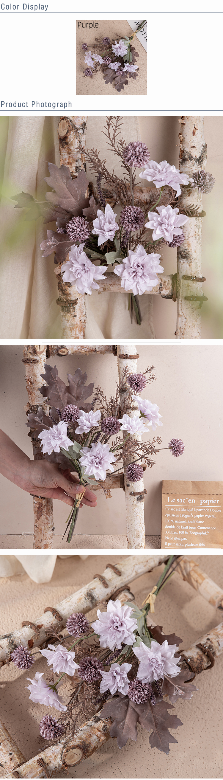 CF01277 Fall Artificial Flower Dry Bouquet Purple Dahlia Dandelion Acorn Leaf Rosemary Dinning Living Room Kitchen Decoration