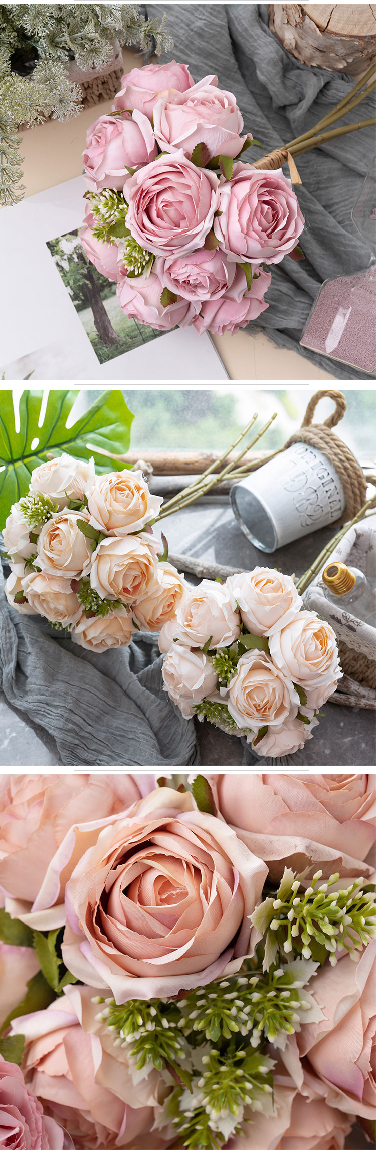 CL04001 High Quality Direct Sale Artificial Silk Plastic Greenery Rose Bundle with 12 For Home Garden Wedding Party Decoration