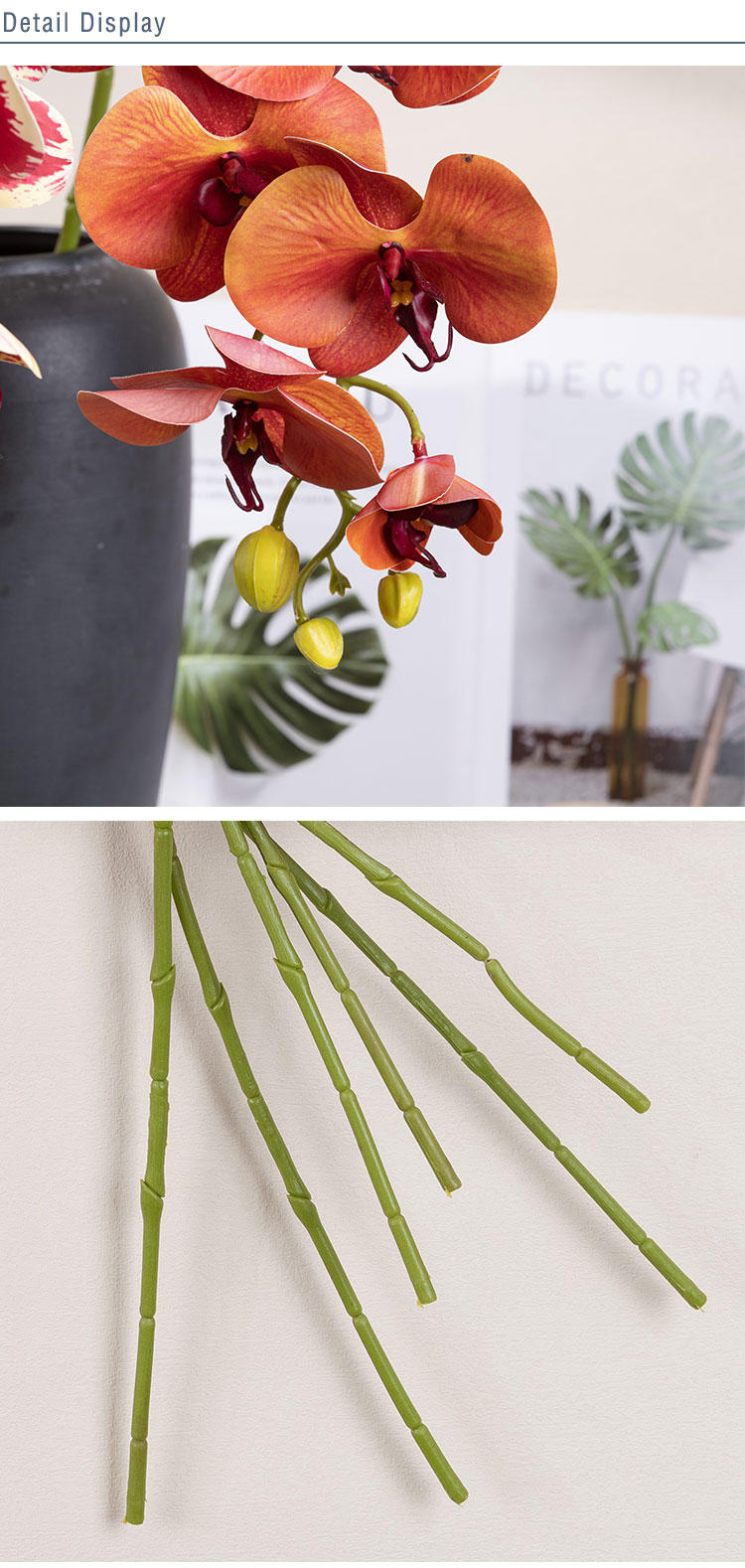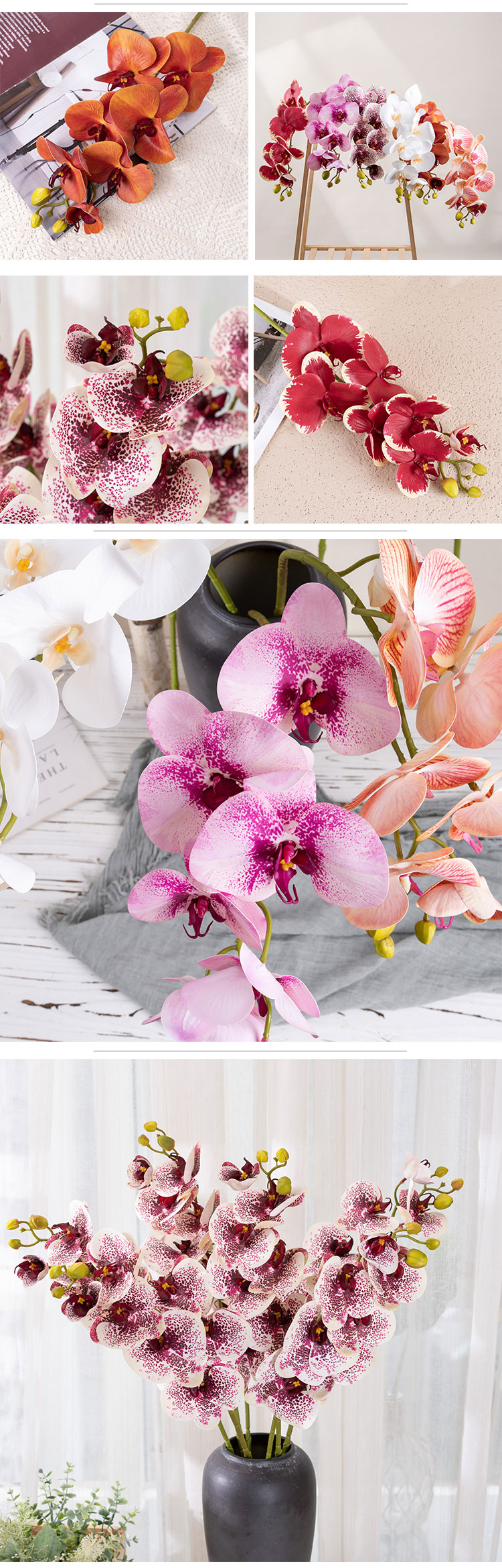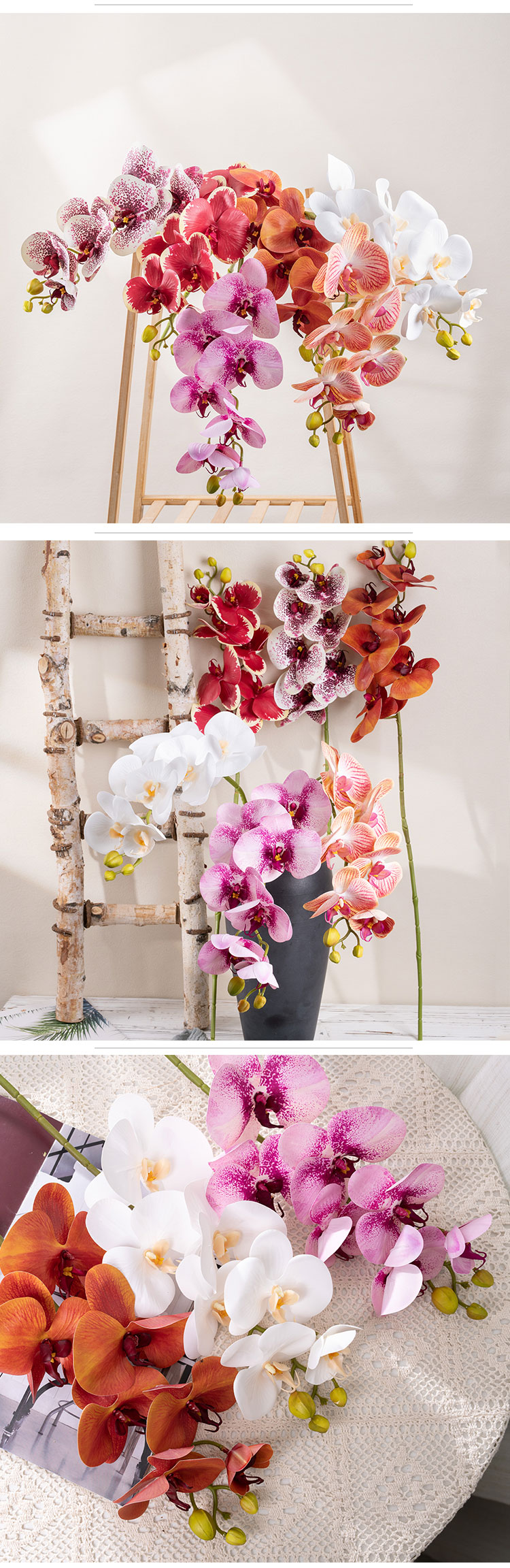 At CALLAFLORAL, we pride ourselves on our attention to detail and craftsmanship. Our Phalaenopsis flowers are meticulously handmade, using a combination of traditional techniques and modern machinery. They come in a variety of colors, including White, White Purple, Rose Pink, Red, Orange, and Champagne. Choose the color that best suits your style and preference.Our 7 Phalaenopsis is suitable for a wide range of occasions and settings. Whether you want to add a touch of beauty to your home, create a stunning centerpiece for a wedding or event, or simply enhance your photography props, these flowers are perfect.
