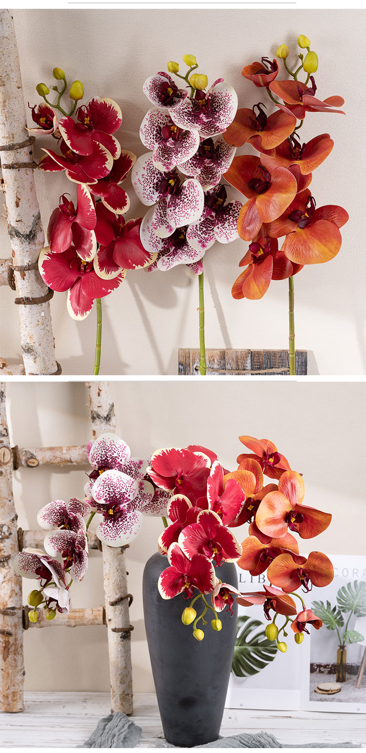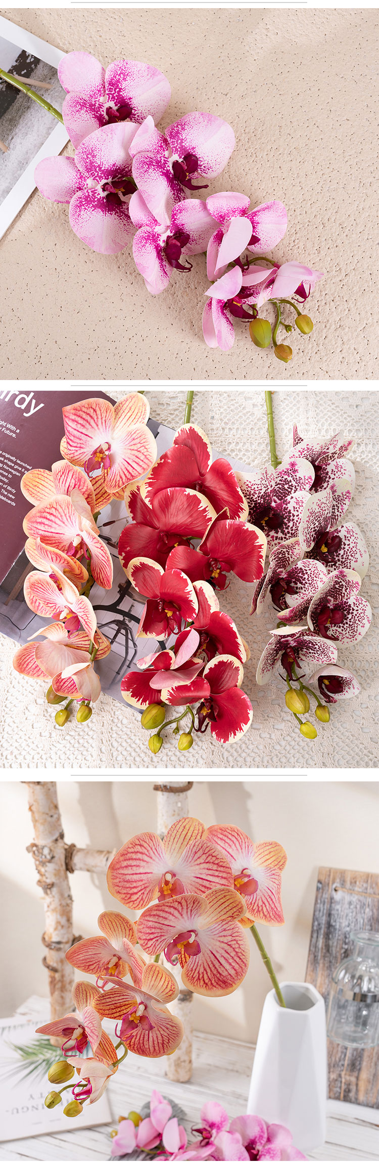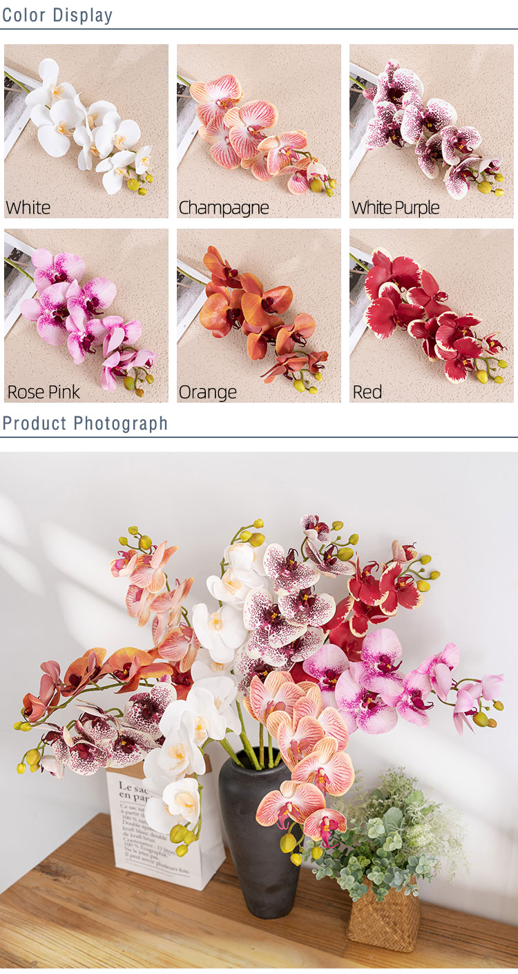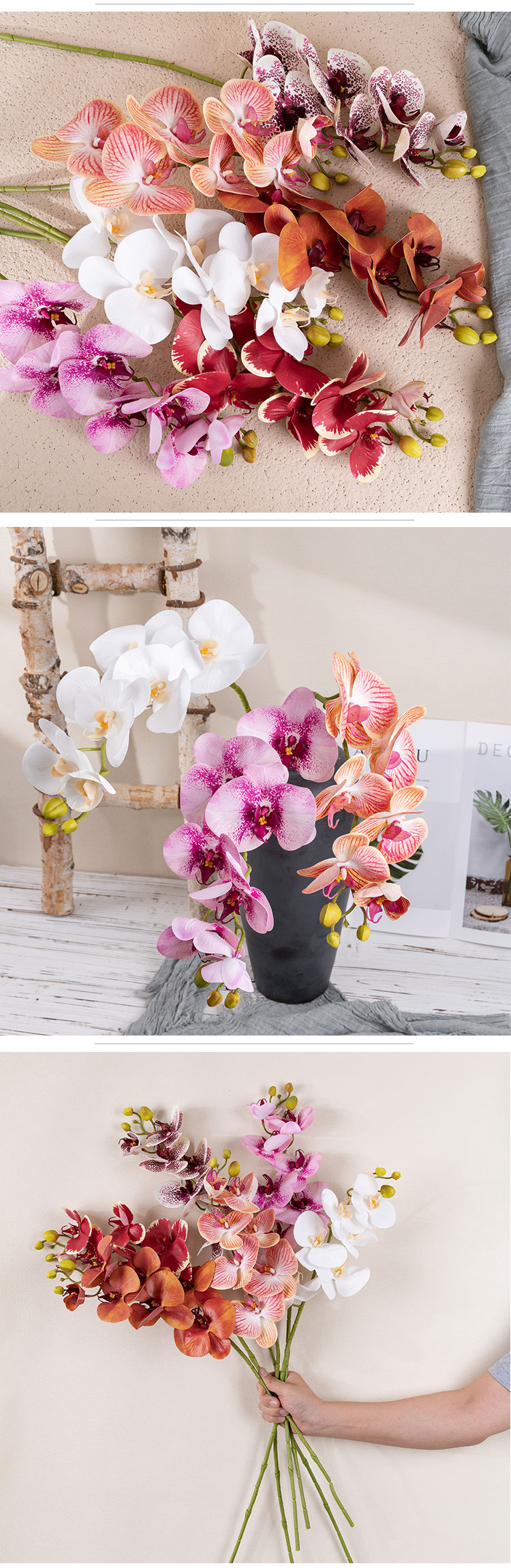 At CALLAFLORAL, we pride ourselves on our attention to detail and craftsmanship. Our Phalaenopsis flowers are meticulously handmade, using a combination of traditional techniques and modern machinery. They come in a variety of colors, including White, White Purple, Rose Pink, Red, Orange, and Champagne. Choose the color that best suits your style and preference.Our 7 Phalaenopsis is suitable for a wide range of occasions and settings. Whether you want to add a touch of beauty to your home, create a stunning centerpiece for a wedding or event, or simply enhance your photography props, these flowers are perfect.