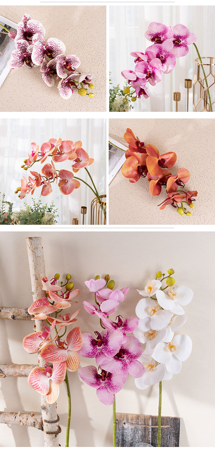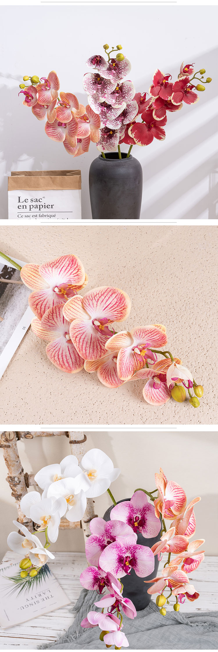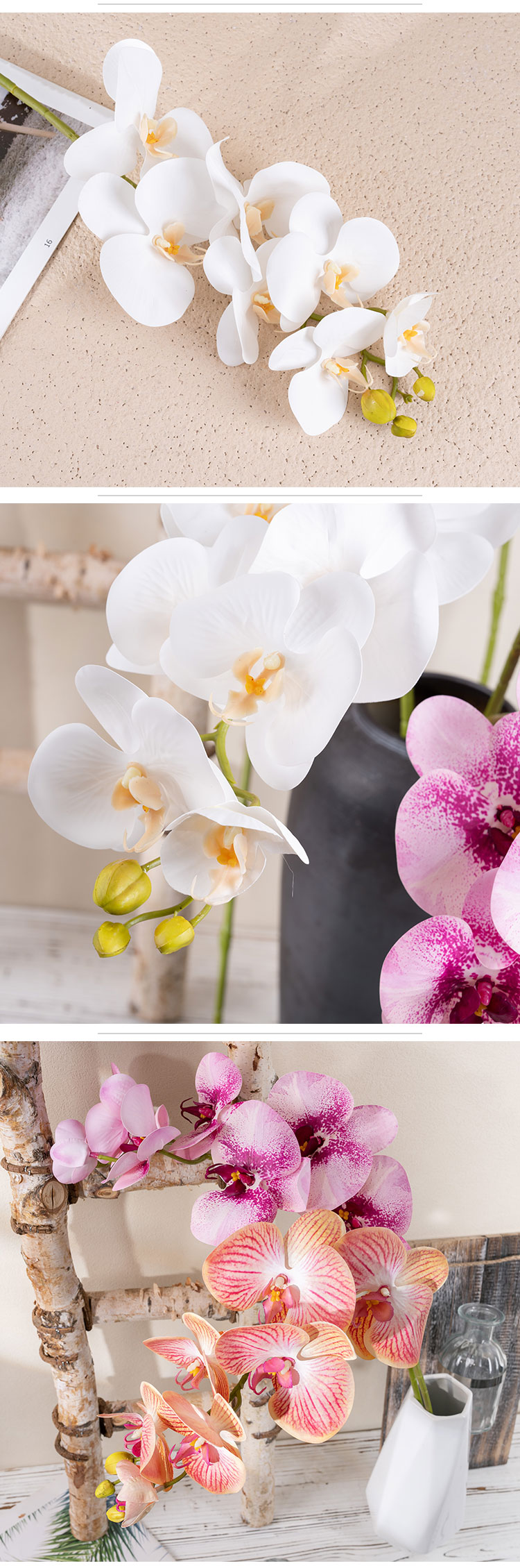 ntroducing the Stunning and Lifelike 7 Phalaenopsis!Are you in search of a floral masterpiece that will captivate your senses? Look no further! Our 7 Phalaenopsis is the perfect choice for adding a touch of elegance and beauty to any space. Each branch is composed of 6 Phalaenopsis flower heads and 1 Phalaenopsis bud, creating a stunning display that will leave you in awe.Made from real touch latex, our Phalaenopsis flowers are incredibly lifelike to the touch. You won’t believe they’re not real!