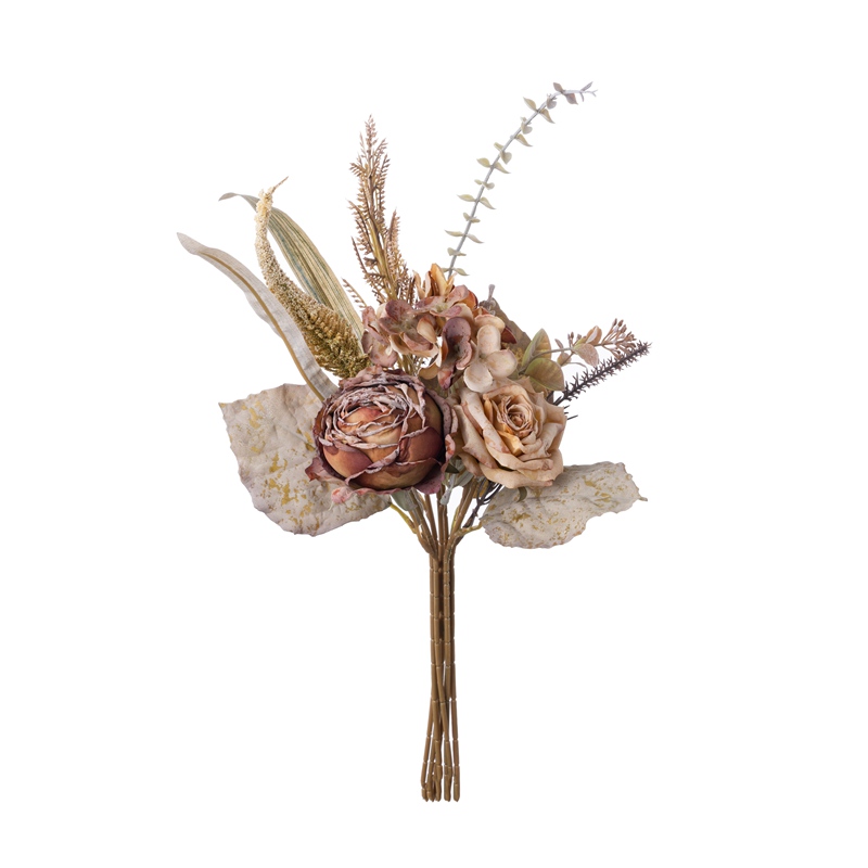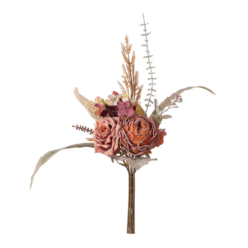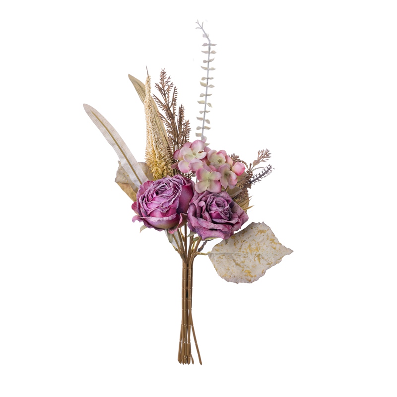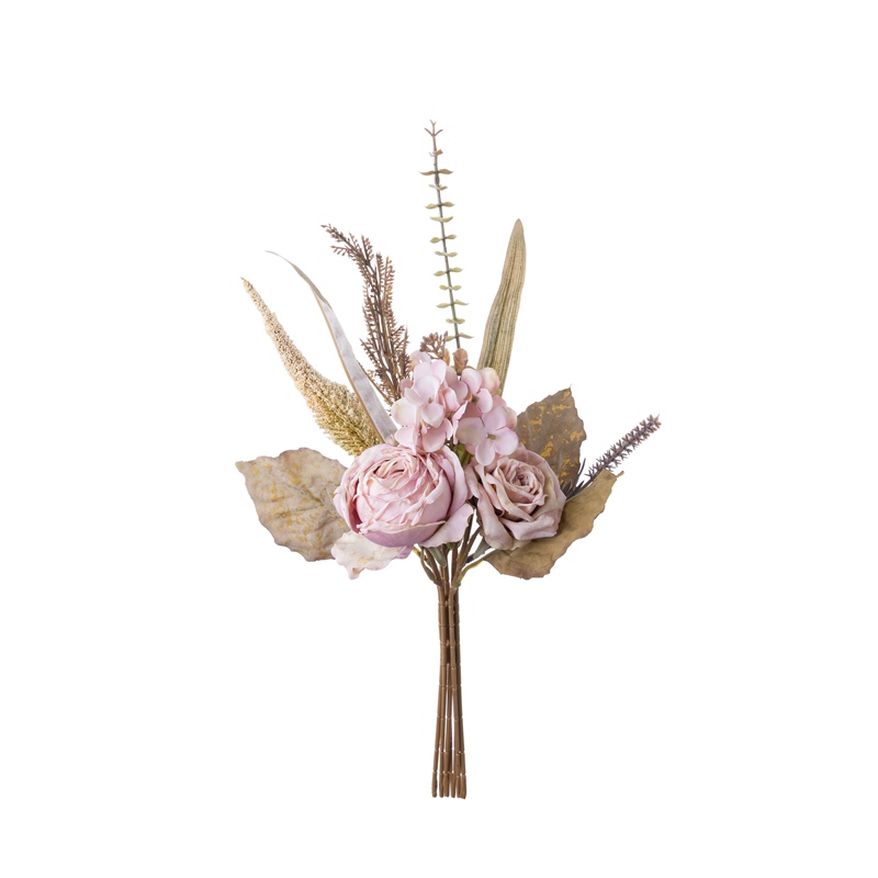 The creation of the CL10516 Rose Hydrangea Tapine Bunches involves a harmonious blend of handmade artistry and machine precision. Skilled artisans meticulously select and arrange each flower and accessory, ensuring that every element complements the others seamlessly. This meticulous process, coupled with advanced machinery that aids in the preservation and enhancement of the flowers’ natural beauty, results in a bouquet that is as durable as it is enchanting.