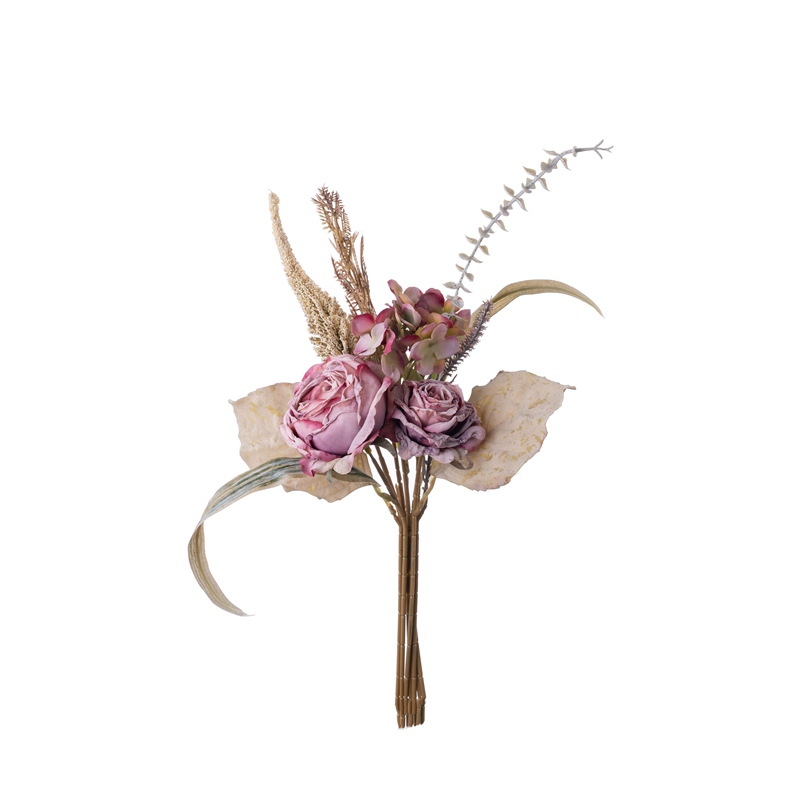 Each bunch of the CL10516 comes with seven branches, a meticulously curated selection that includes not only round roses, open roses, hydrangeas, but also pine, bamboo leaves, and other accessories that enhance the bouquet’s overall appeal. These accessories, chosen with care, add texture, depth, and color to the arrangement, making it a comprehensive work of floral art that is as pleasing to the eye as it is to the soul.