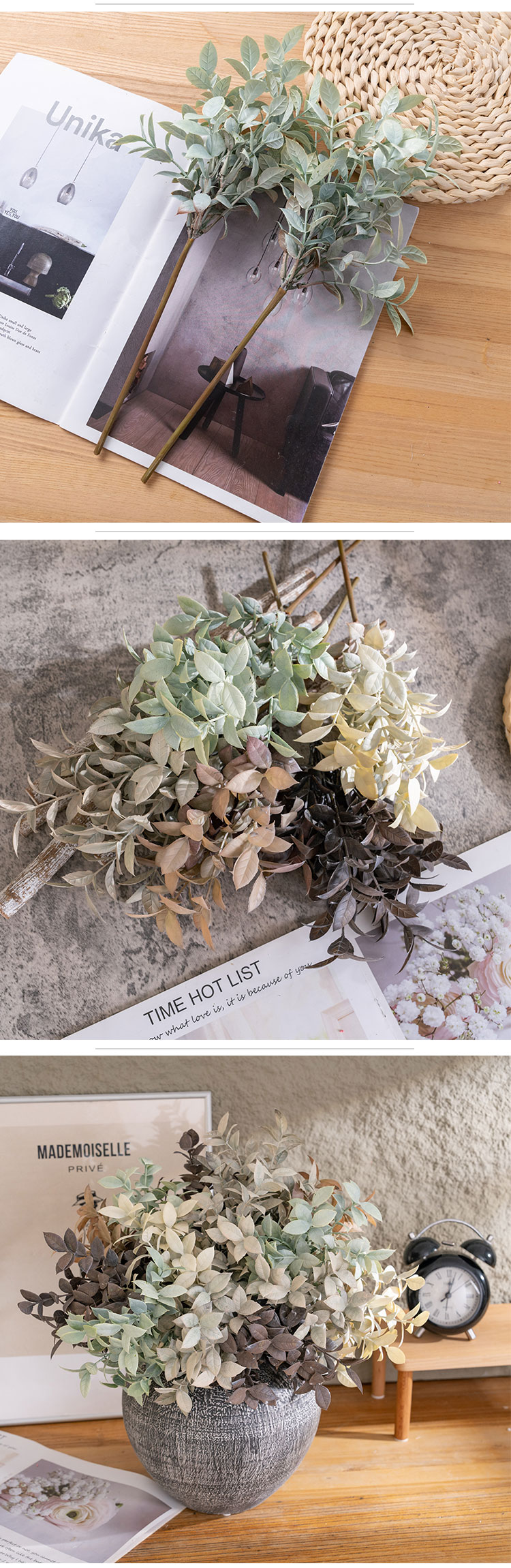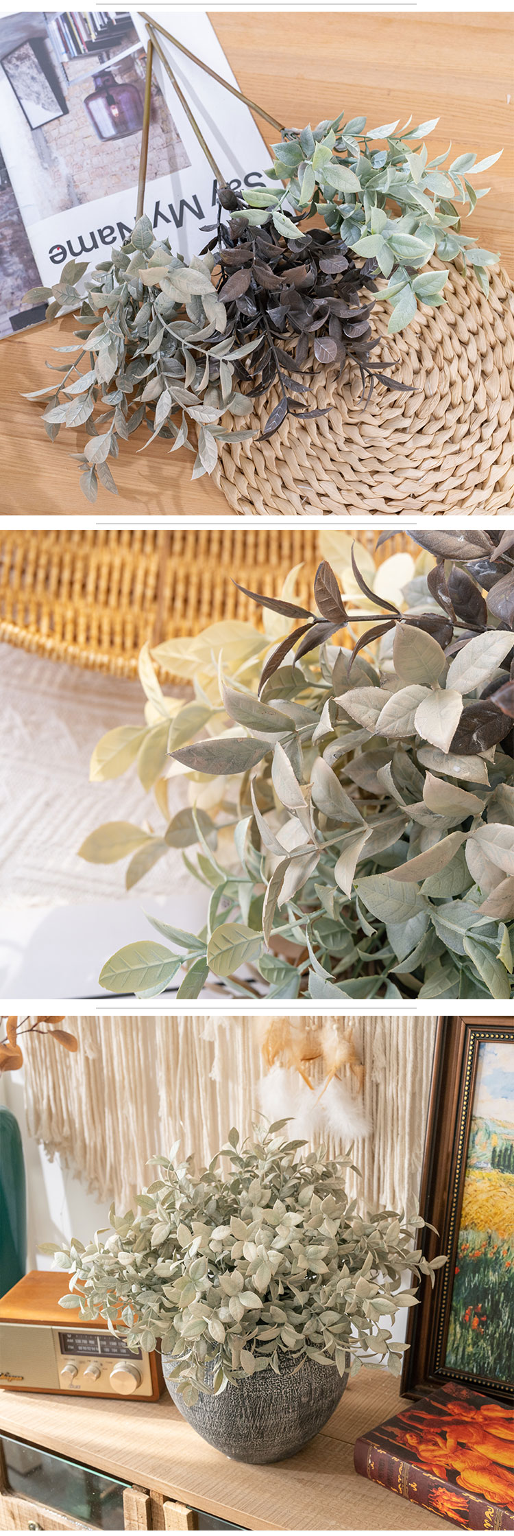 The magic of the CL11002 lies in its dual craftsmanship: a blend of handmade details that infuse each piece with unique character, paired with machine precision that ensures consistent quality. Backed by ISO9001 and BSCI certifications, it’s a product you can trust to meet high standards of excellence.Versatility is key here. This eucalyptus stem shines in countless settings: brightening up a home bedroom, adding warmth to a hotel lobby, softening the atmosphere of a hospital room, or enhancing the ambiance of a wedding venue.
