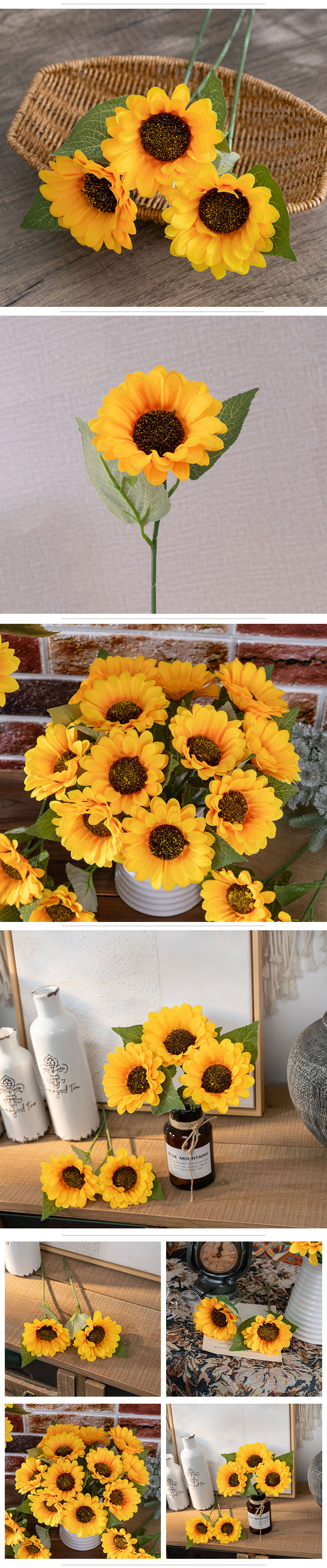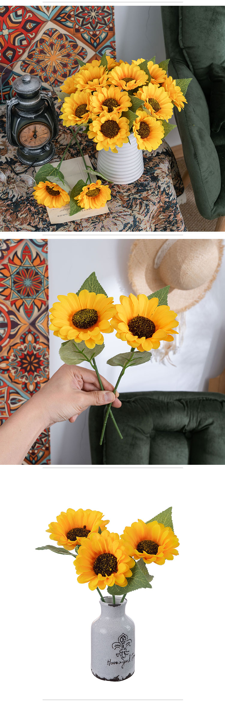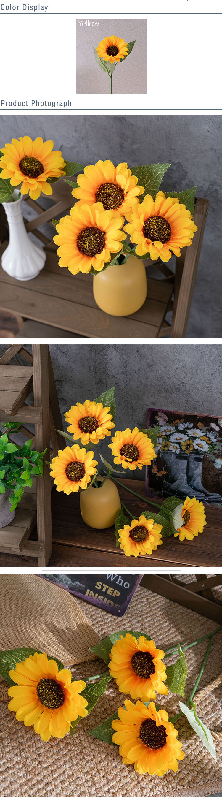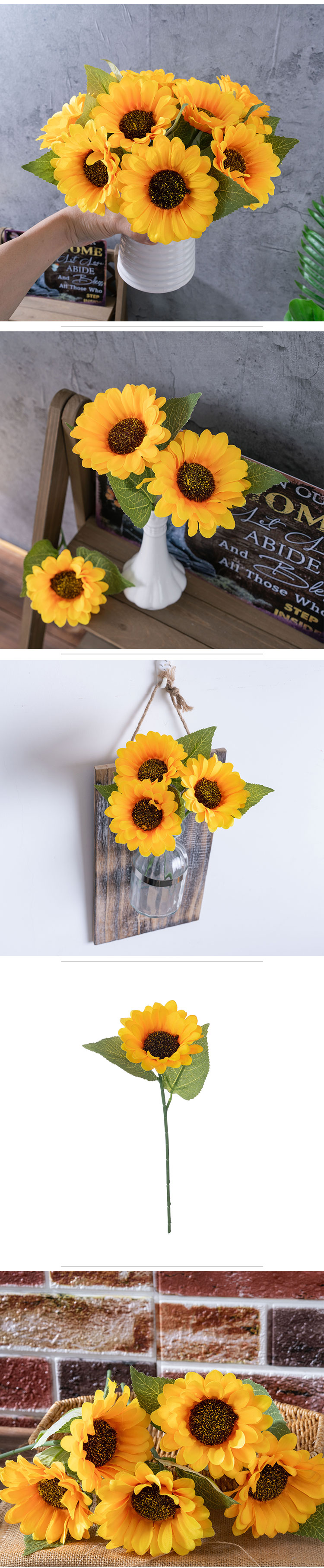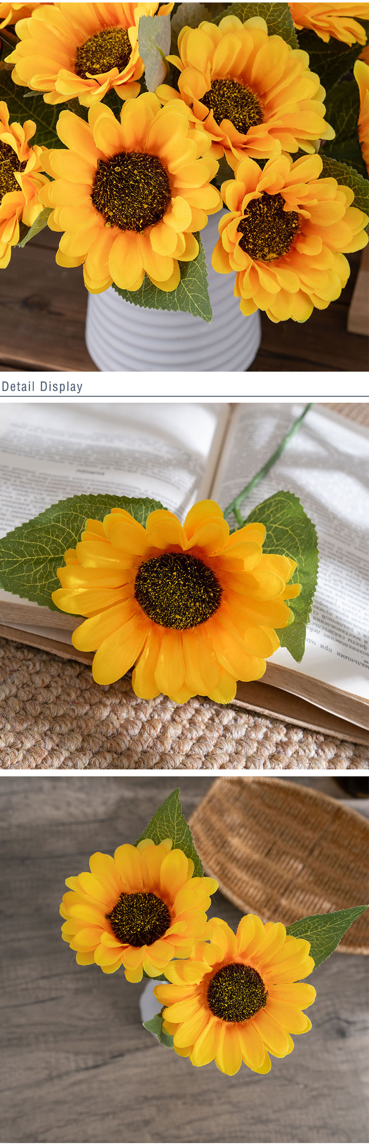 The main material composition—fabric, plastic, and iron wire—ensures both a realistic look and durable structure. The fabric forms the soft, vibrant petals of the sunflower, mimicking the natural texture with remarkable precision, while the plastic base and iron wire stem provide stability and flexibility, allowing you to adjust the angle and posture of the flower to suit your display needs.In terms of size, this sunflower stem strikes an ideal balance between being eye-catching and space-friendly.