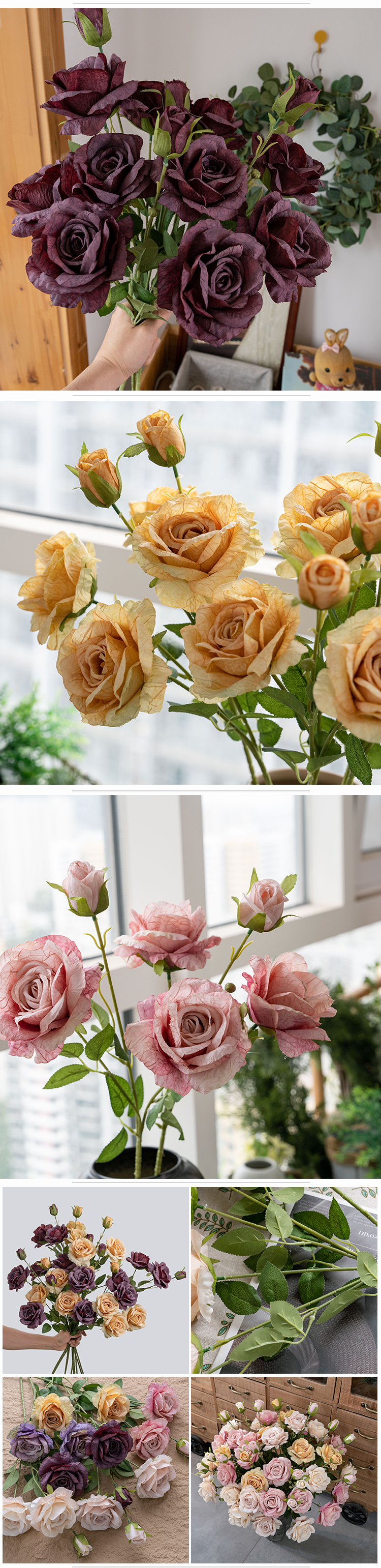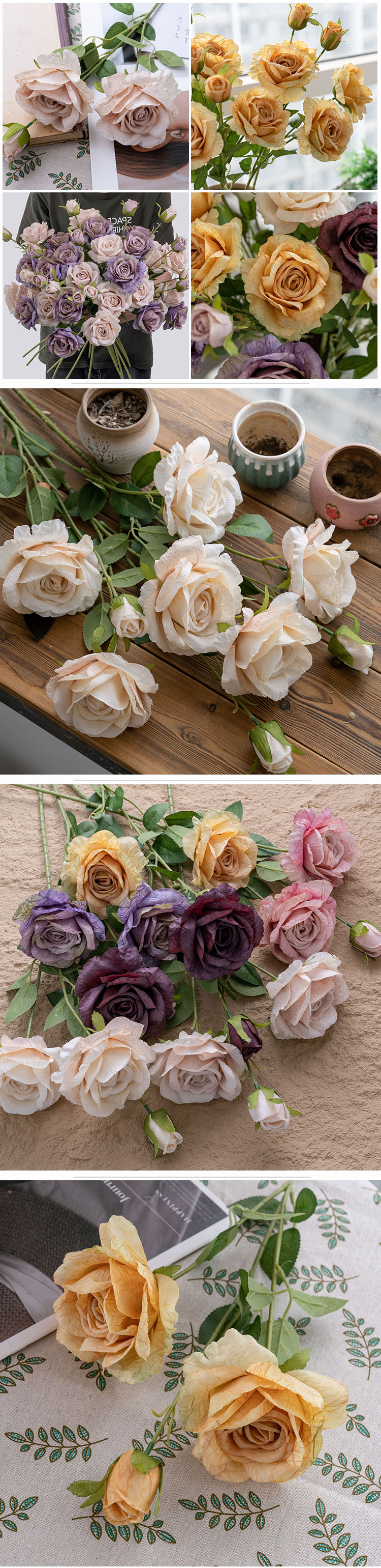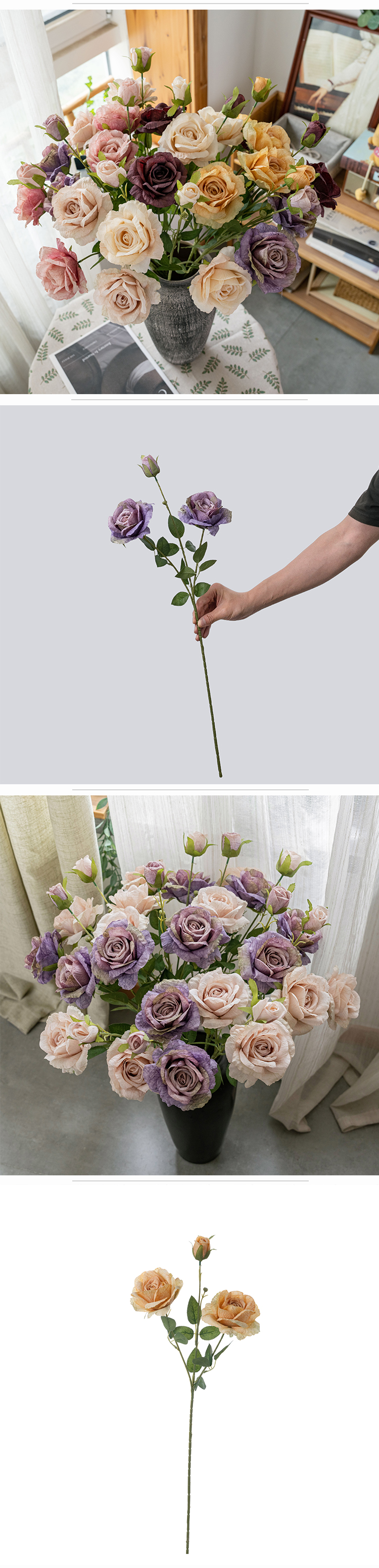 CL30004 Artificial Elegant Long-stemmed Roses Silk Rose 3 Heads Long Spray Perfect for Floral Arrangements Home Party Decor