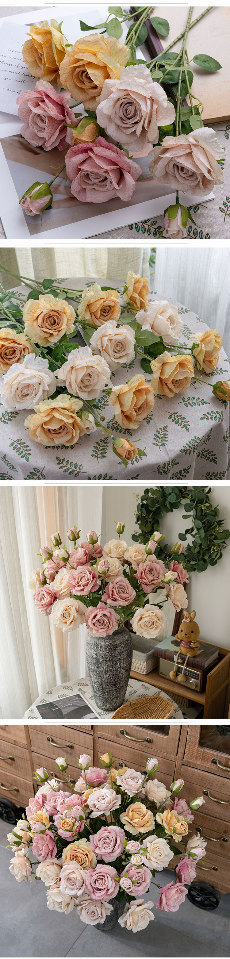 Run your fingers along the petals, and you’ll pause—half-convinced you’ve brushed against a living bloom. The fabric softens at the edges, mimicking the slight translucency of rose petals kissed by sunlight, while the plastic calyx and wire stems lend just enough structure to keep the spray standing tall, yet flexible enough to bend into the natural curve of a vase or the crook of a shelf. At 70 to 71 centimeters tall, it’s the perfect height: not too imposing to dominate a bedroom nightstand, not too small to get lost in a hotel lobby’s grandeur. Weighing a mere 45 grams, it feels light as a breath, yet sturdy enough to weather the chaos of a carnival booth or the calm of a hospital room, bringing a touch of warmth to spaces that need it most.