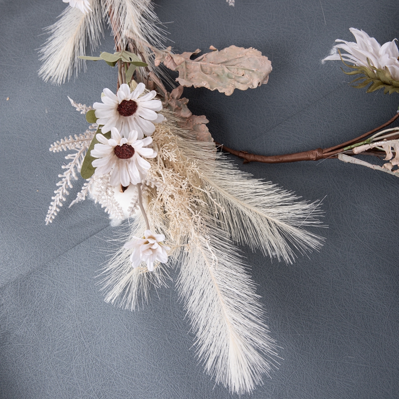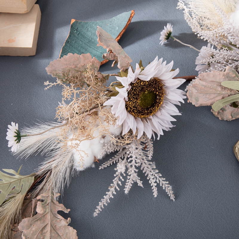 The DY1-6121 Sunflower Fuzzy Vine captivates with its graceful length of 180cm, stretching elegantly to adorn any space with a touch of sunshine and whimsy. Priced singularly, this vine showcases a harmonious blend of sunflowers, fluffy grasses, cotton, and other meticulously selected grass accessories, each meticulously crafted to enhance the overall aesthetic.