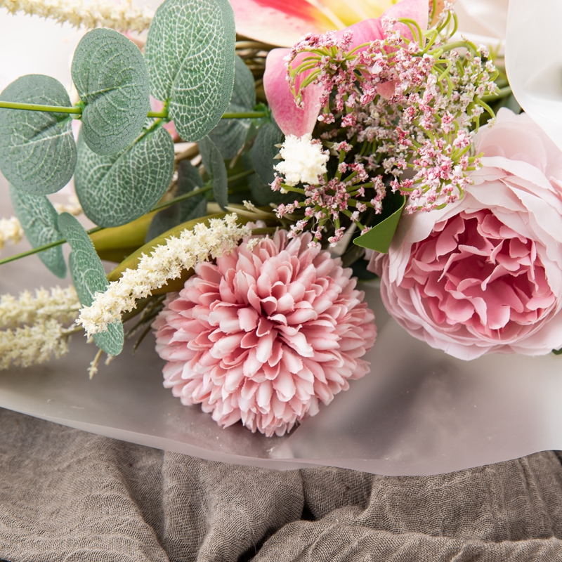 Standing tall at 43cm and boasting a generous diameter of 28cm, this exquisite bundle is a harmonious blend of lilies, dandelions, land lilies, eucalyptus, and other intricate grass accessories, creating a visual symphony that delights the senses.