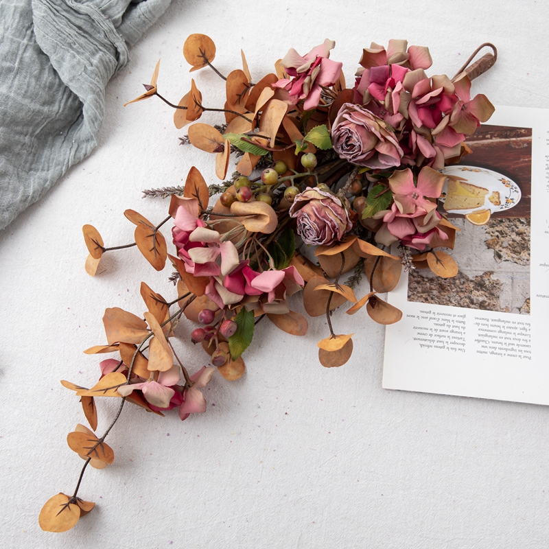 Available in a range of sophisticated colors including Champagne, Purple, and Rose Red, the Eucalyptus Hydrangea Charm allows for versatile styling options to suit your personal taste and décor preferences. Whether used for weddings, exhibitions, or everyday décor, this piece adds a touch of natural elegance and beauty to any occasion.