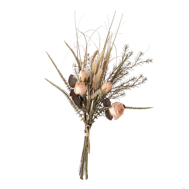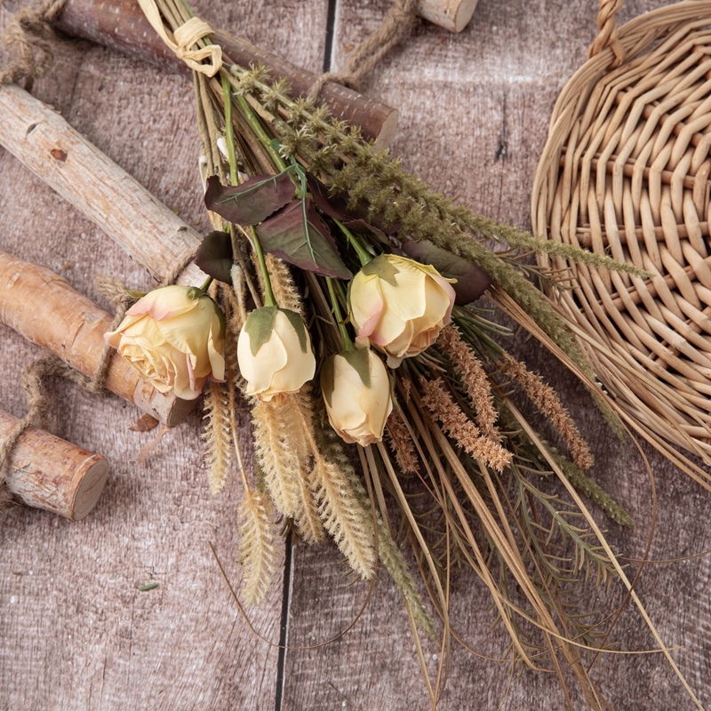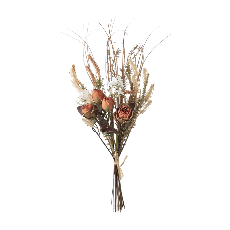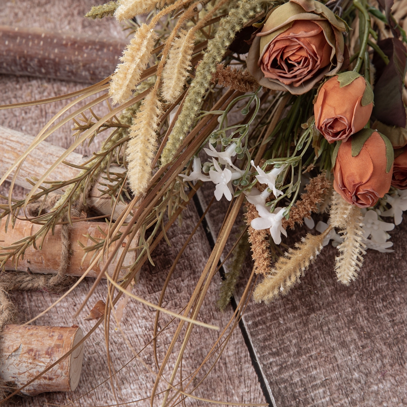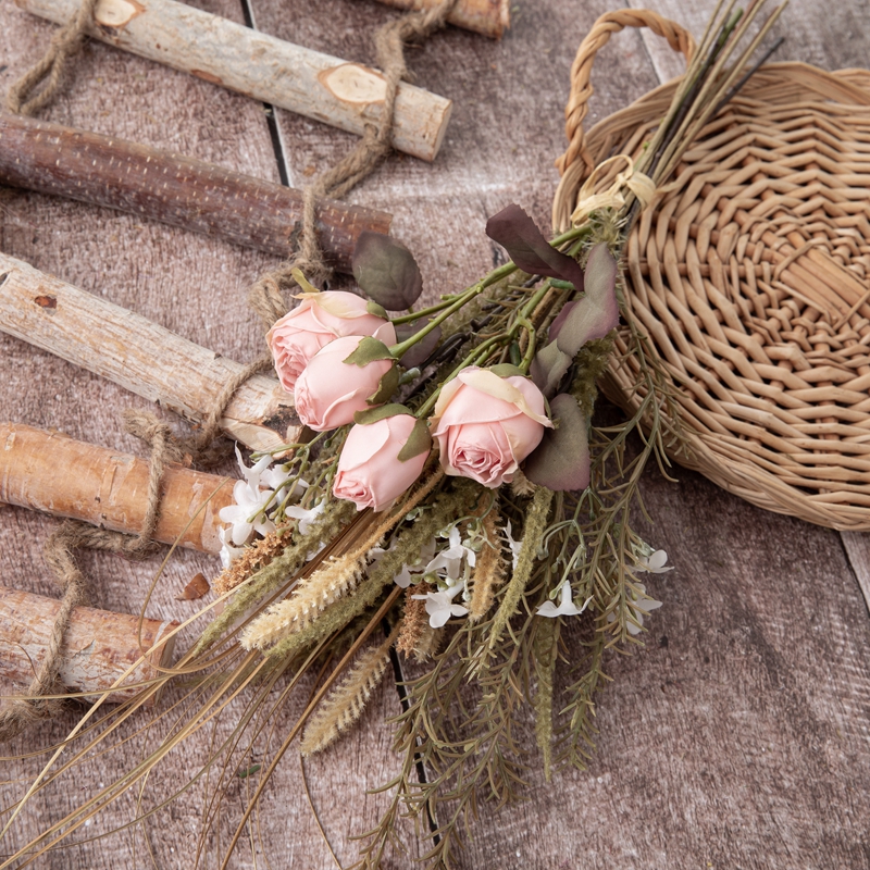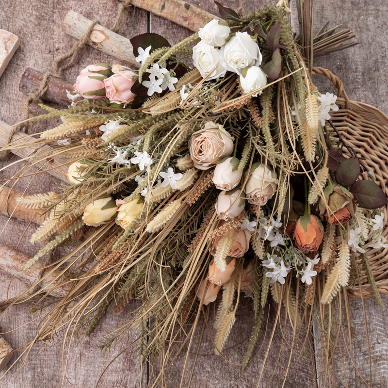 Standing tall at an overall height of 51cm and boasting an overall diameter of 19cm, the DY1-6368 bundle is a statement piece that captivates with its intricate details. Each element is meticulously designed, from the dry-roasted rose large flower head measuring 3.7cm in height and 4.3cm in diameter, to the dry-roasted rose small flower head, dry-roasted rose buds, and accompanying flowers, accessories, grass, and leaves, creating a harmonious composition that brings a touch of natural beauty indoors.