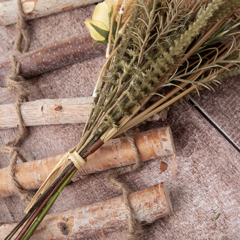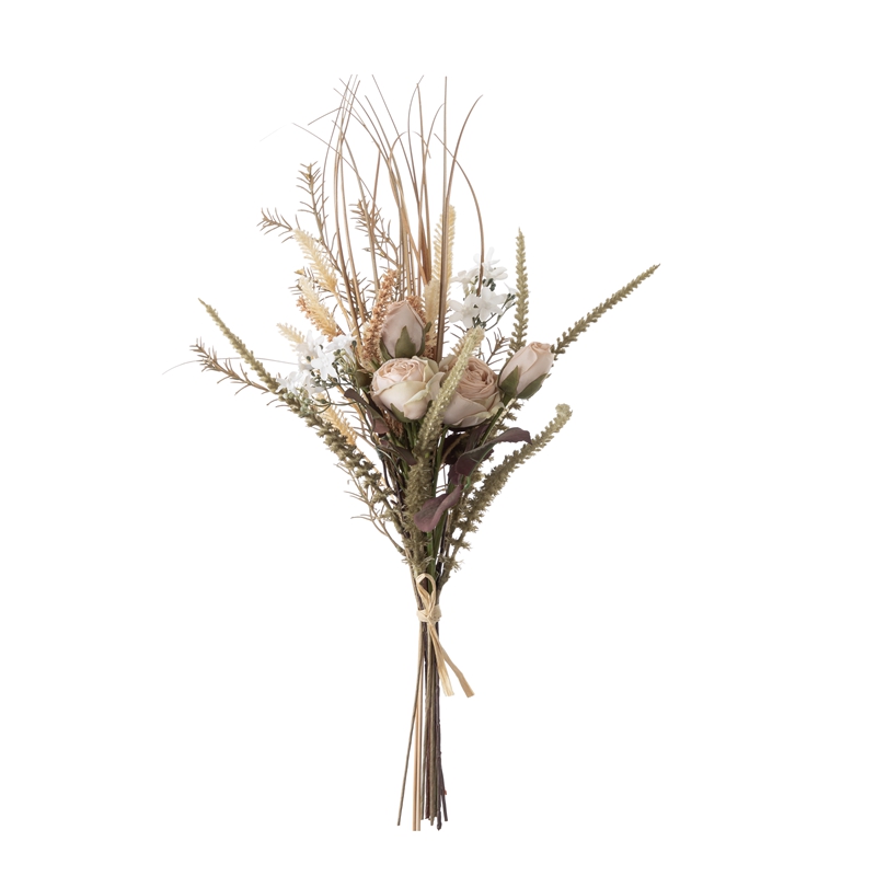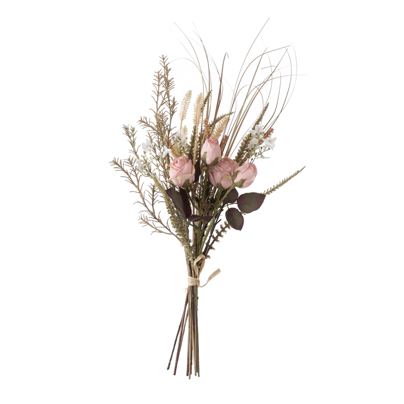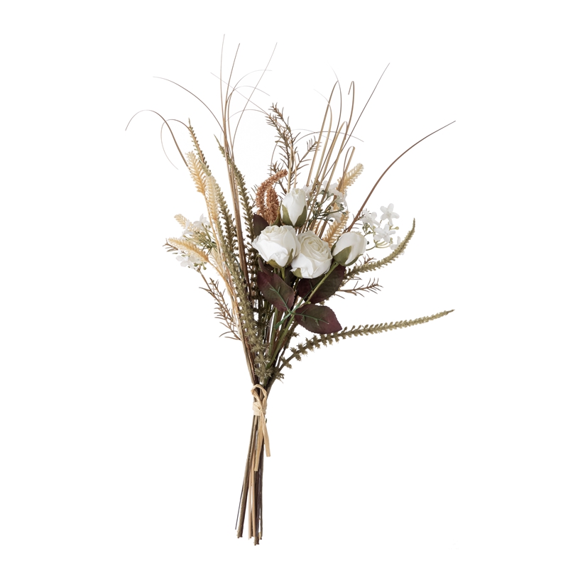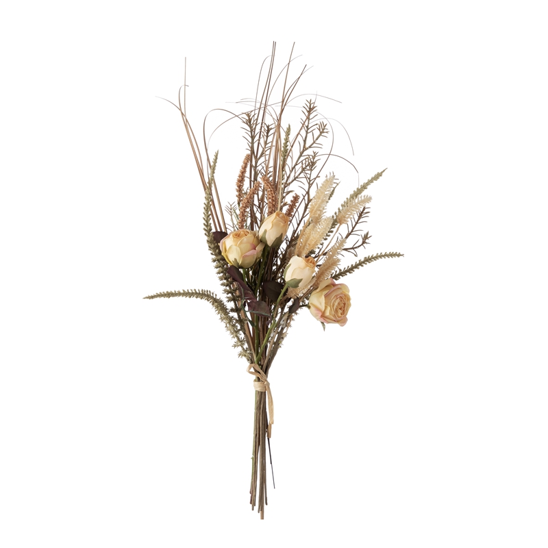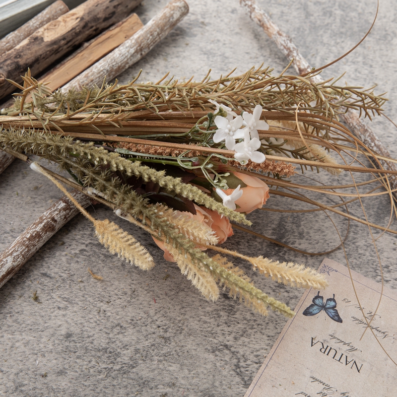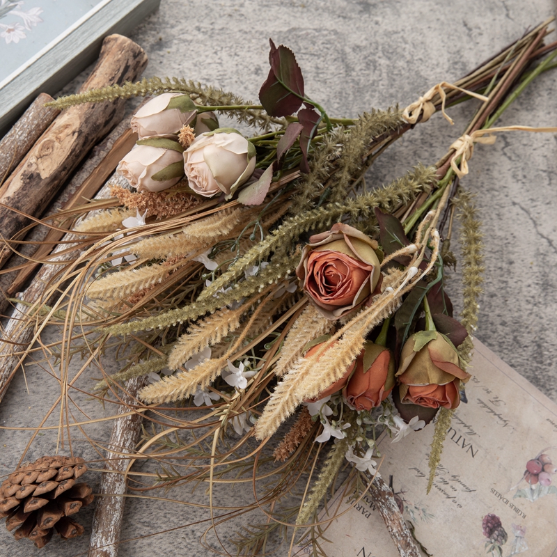 Standing tall at an overall height of 51cm and boasting an overall diameter of 19cm, the DY1-6368 bundle is a statement piece that captivates with its intricate details. Each element is meticulously designed, from the dry-roasted rose large flower head measuring 3.7cm in height and 4.3cm in diameter, to the dry-roasted rose small flower head, dry-roasted rose buds, and accompanying flowers, accessories, grass, and leaves, creating a harmonious composition that brings a touch of natural beauty indoors.