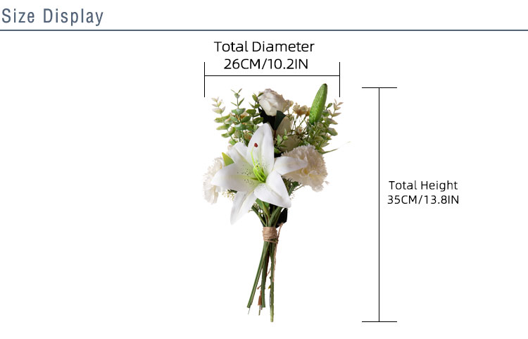 Cada pétalo delicadamente elaborado a mano, meticulosamente moldeado utilizando una combinación de técnicas hechas a mano y a máquina, cuenta una historia de dedicación y pasión por la perfección. Abrace la intrincada belleza y la suave fragancia mientras disfruta de la pura elegancia de este impresionante arreglo. La versatilidad no conoce límites con nuestro Ivory Elegance Bouquet. Ya sea que adorne el gran salón de baile de una celebración de boda o agregue un toque de sofisticación a un evento corporativo, este ramo realza sin esfuerzo cualquier entorno, exudando encanto y sofisticación atemporales.