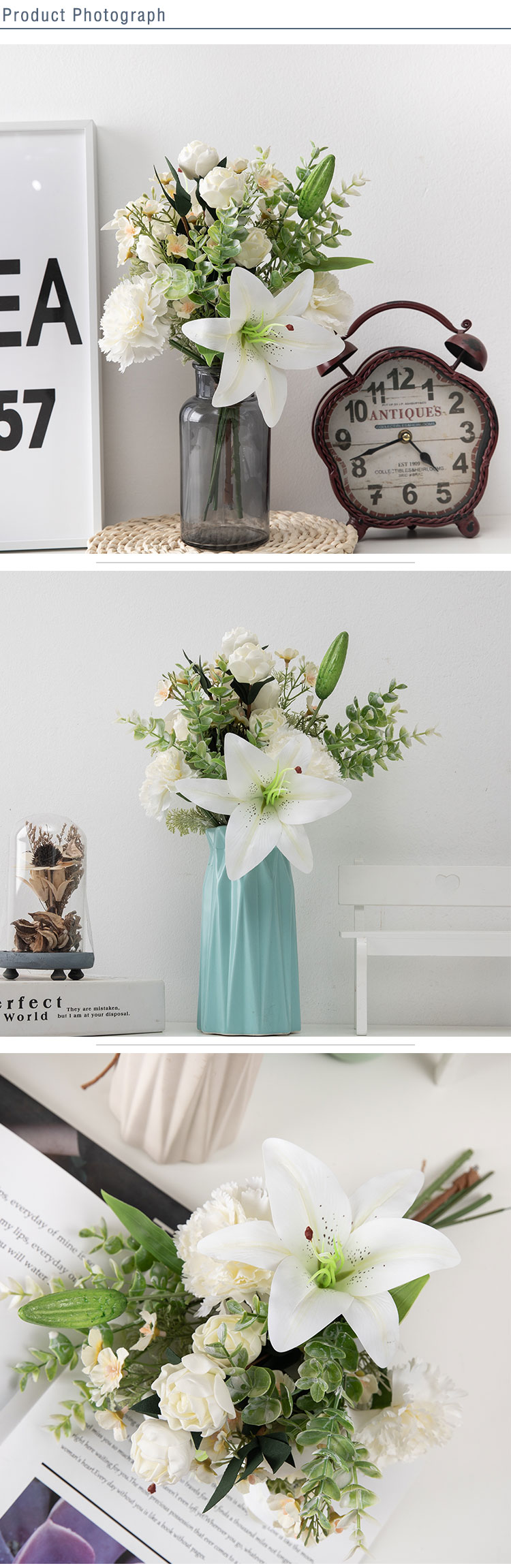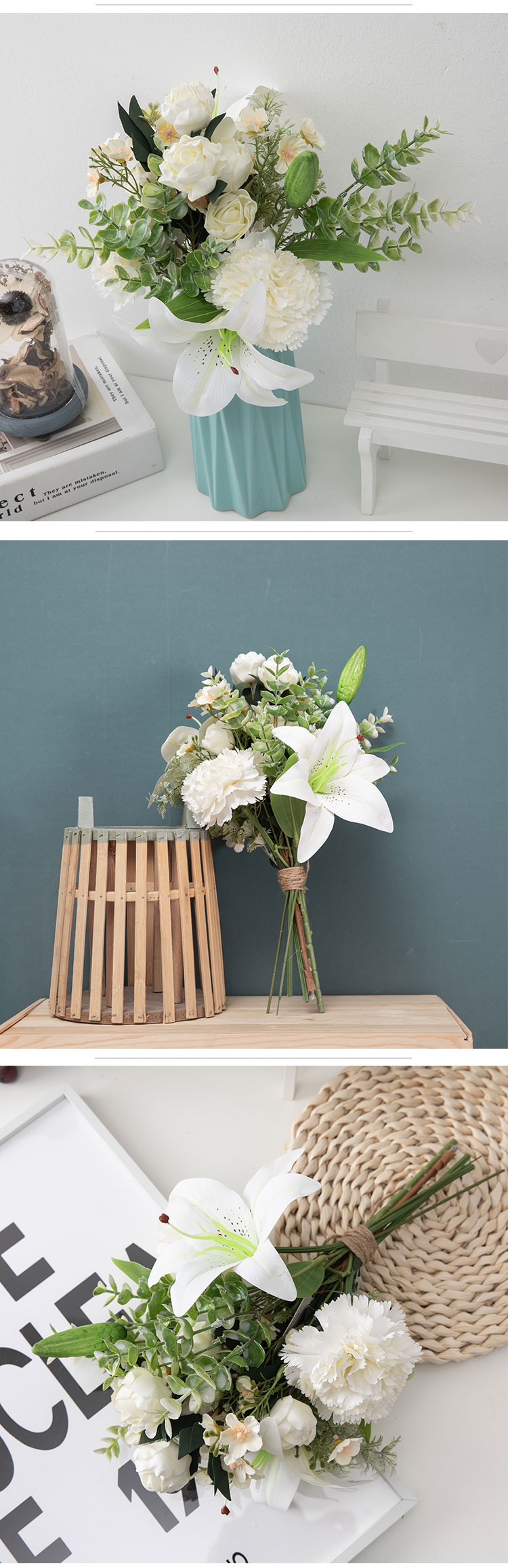 CF01181 Ramo de lirios de clavel artificial, nuevo diseño, decoración de jardín, decoración de boda, decoraciones festivas