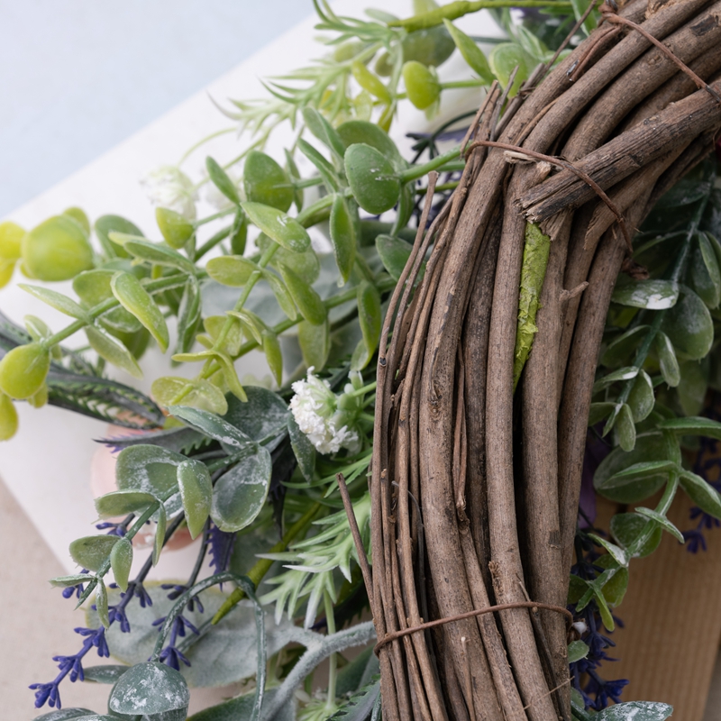 Tämä 600 g painava kevyt seppele on helppo käsitellä ja ripustaa. Jokainen seppele hinnoitellaan yksilöllisesti ja koostuu useista pienoisliljoista, eukalyptuksen lehdistä, flokkivista vesikasveista ja muista kukista ja yrteistä. Näiden elementtien yhdistelmä luo upean ja realistisen ulkonäön.