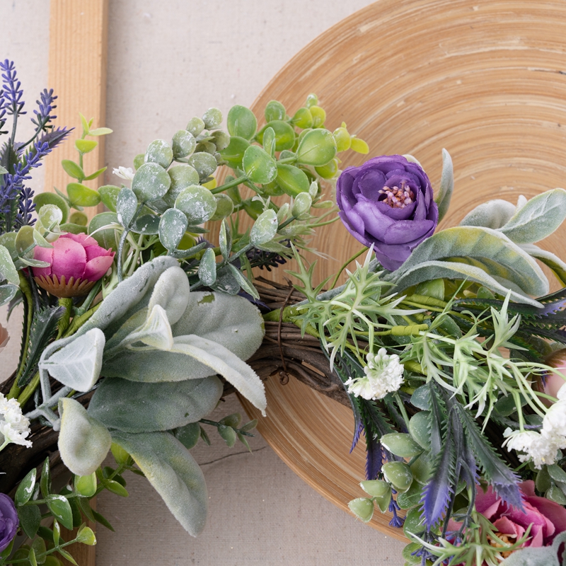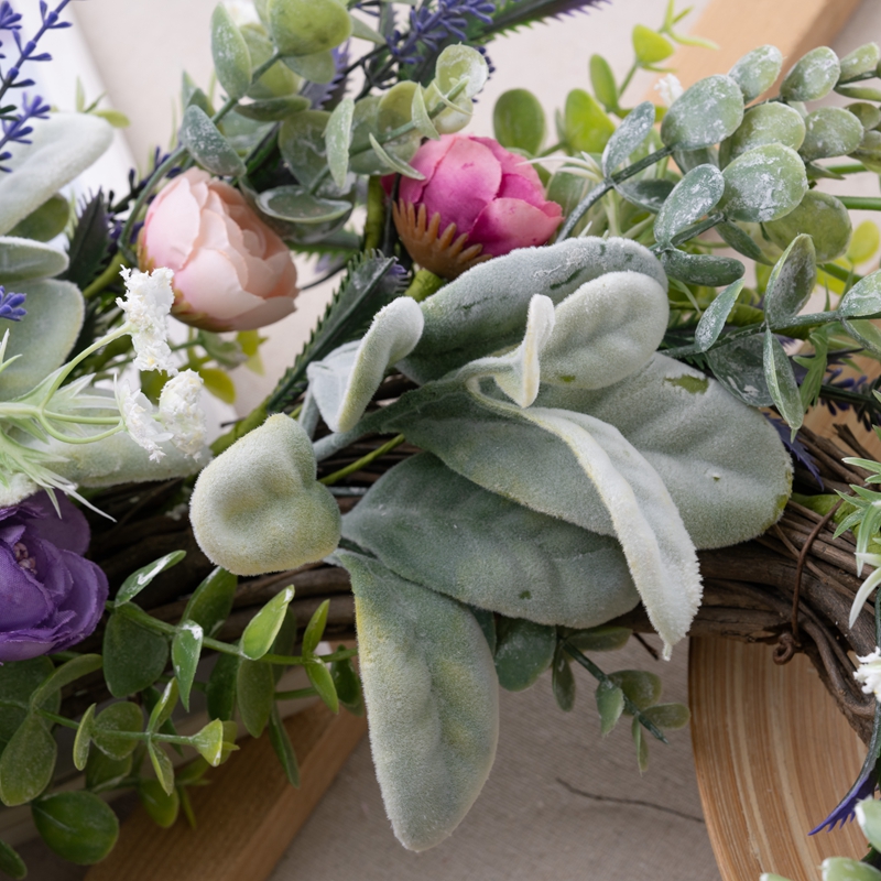 Lisää ripaus eleganssia ja kauneutta mihin tahansa tilaan CL54578 Mini Ranunculus Leaves Wreath -seppeleellä. Tämä upea koristekappale on valmistettu muovin, kankaan, flockingin, puun oksien ja langan yhdistelmästä, mikä varmistaa kestävyyden ja pitkäikäisyyden.