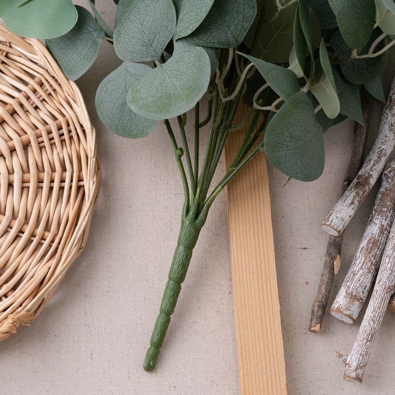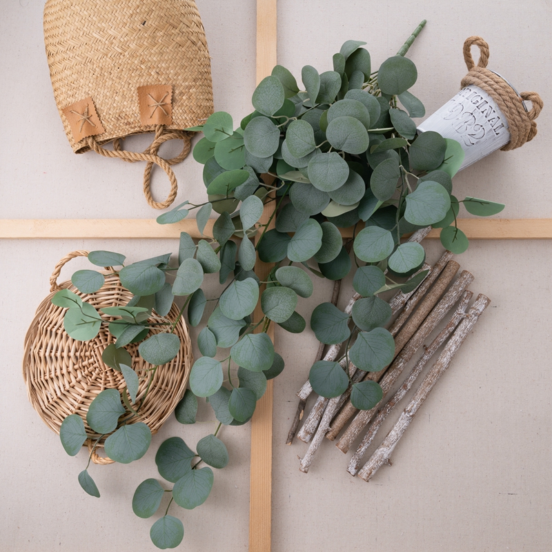 Síneadh go galánta go fad suntasach 85cm, scaoileann an CL79502 Eucalyptus Drop a fhoirm galánta go galánta, le trastomhas foriomlán 26cm a chinntíonn láithreacht cothrom agus tarraingteach ó thaobh amhairc de. Ag a chroílár, tá 11 bhrainse eucalyptus saindéanta fite fuaite ina chéile, maisithe le flúirse flaithiúil de dhuilleoga lush, gach ceann acu roghnaithe go cúramach chun áilleacht dhúchasach na hAstráile a mhacasamhlú. Ní hamháin go nglacann an socrú casta seo croílár scáthchruth maorga an chrainn ach tugann sé anáil aer úr isteach i dtimpeallacht ar bith.