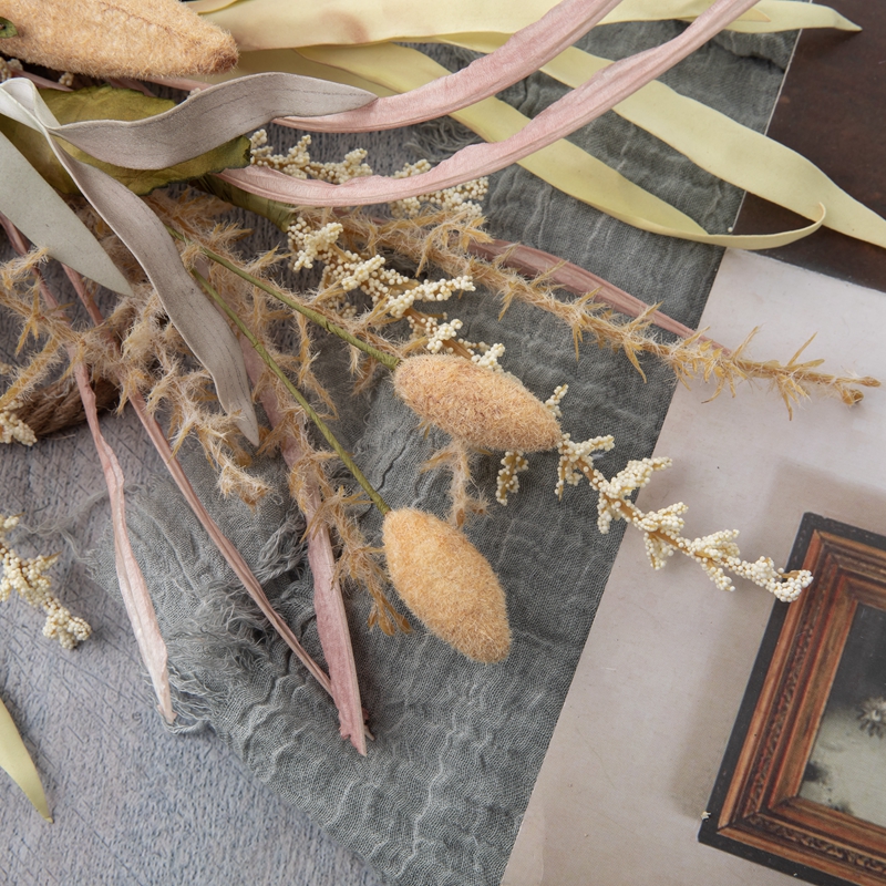 Ennek a terméknek a specifikációja aprólékosan kidolgozott, ára egy köteg, amely két pelyhesítő babot, egy pelyhesítő gyümölcsöt, négy fenyőtornyot, öt pelyhesítő gyógynövényt és több levelet tartalmaz. Az elemeknek ez a változatos kombinációja látványosan lenyűgöző és texturálisan gazdag kijelzőt hoz létre, amely beltérbe hozza a szabadba.