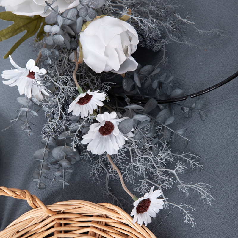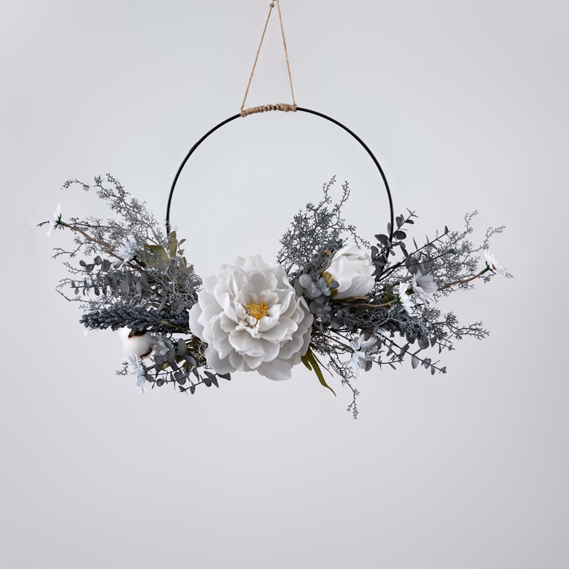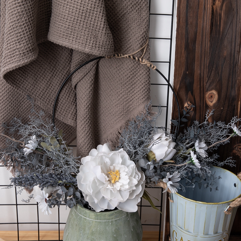 Ngukur 50cm ing diameter njaba sakabèhé, DY1-6164 Half Ring ndadekake keseimbangan antara ukuran lan impact, nawakake potongan serbaguna sing bisa ngowahi papan apa wae dadi papan suci kaendahan. Saben dering setengah digawe kanthi tliti, nampilake kembang peony sing wis dijaga kanthi ati-ati kanggo nahan warna sing sregep lan kelopak sing alus, sing ana ing njero katun sing lembut. Campuran unsur alam iki banjur dipigura dening dering wesi kuwat lan adorned karo aksesoris ruwet, asil ing kesatuan harmonious saka alam lan pakaryan modern.