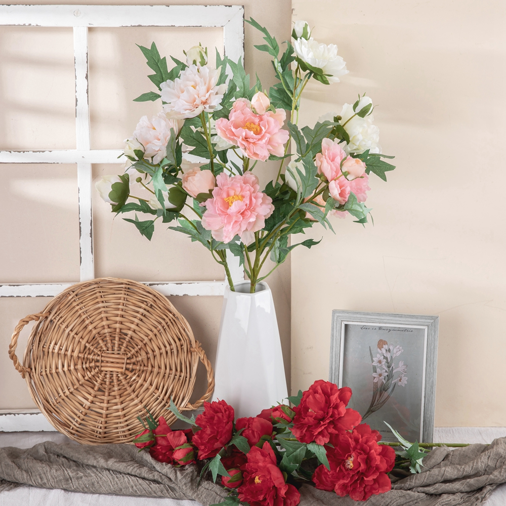 Saben kelopak lan godhong saka cabang tunggal peony buatan wis diukir kanthi ati-ati kanggo mulihake wujud peony sing sejati. Wernane padhang lan alami, teksture alus lan lapisan sing sugih, apa diselehake ing meja kopi ing ruang tamu, utawa digantung ing tembok kamar turu, bisa dadi pemandangan sing apik banget.