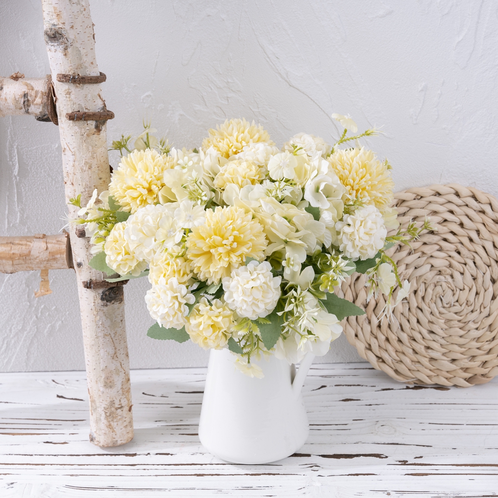 ផ្កាដាន់ឌឺលីយ៉ុងគឺជារុក្ខជាតិដែលពោរពេញដោយជីវិត។ គ្រាប់ពូជរបស់វាបក់បោកក្នុងខ្យល់ ដែលជានិមិត្តរូបនៃក្តីសង្ឃឹម និងសេរីភាពគ្មានទីបញ្ចប់។ ភួងផ្កាអ៊ីដ្រាហ្គែនឌ្រីយ៉ានដែលក្លែងធ្វើនេះបង្ហាញពីភាពរស់រវើក និងភាពស្រស់ថ្លានេះយ៉ាងល្អឥតខ្ចោះនៅចំពោះមុខយើង។ វាប្រើប្រាស់សម្ភារៈក្លែងធ្វើដែលមានគុណភាពខ្ពស់ និងឆ្លងកាត់ដំណើរការផលិតដ៏ល្អ ដើម្បីធ្វើឱ្យផ្កាអ៊ីដ្រាហ្គែនឌ្រីយ៉ាននីមួយៗមានជីវិត។
