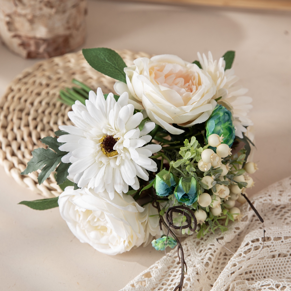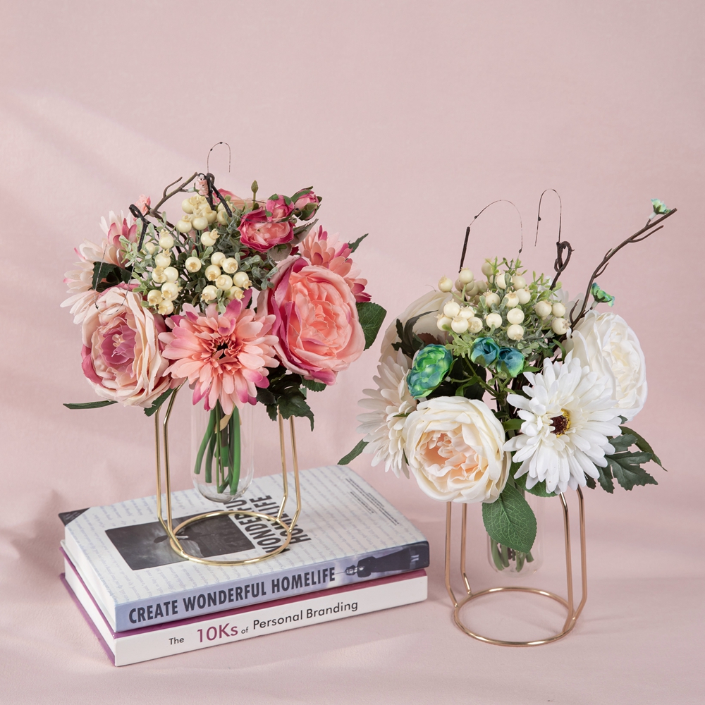 ផ្កាគ្រីសាន់ធីម៉ុមដែលត្រូវបានគេស្គាល់ផងដែរថាជាផ្កាហ្គឺបេរ៉ា បានទាក់ទាញចិត្តមនុស្សចំពោះរូបរាងប្លែក និងពណ៌ភ្លឺរបស់វា។ ផ្ការបស់វាដុះជាស្រទាប់ៗ ដូចជាកាំជ្រួចដែលកំពុងរីក រីកស្គុះស្គាយនូវភាពរស់រវើក និងភាពរស់រវើកគ្មានទីបញ្ចប់។ ផ្កាកុលាប ជានិមិត្តរូបនៃសេចក្តីស្រឡាញ់ គឺជាជម្រើសដ៏រ៉ូមែនទិកនៅក្នុងចិត្តមនុស្ស។ នៅពេលដែលផ្កាទាំងពីរនេះត្រូវបានបង្ហាញដល់យើងក្នុងទម្រង់ជាភួងផ្កាក្លែងក្លាយ ភាពរីករាយ និងអំណរនឹងកើតឡើង។