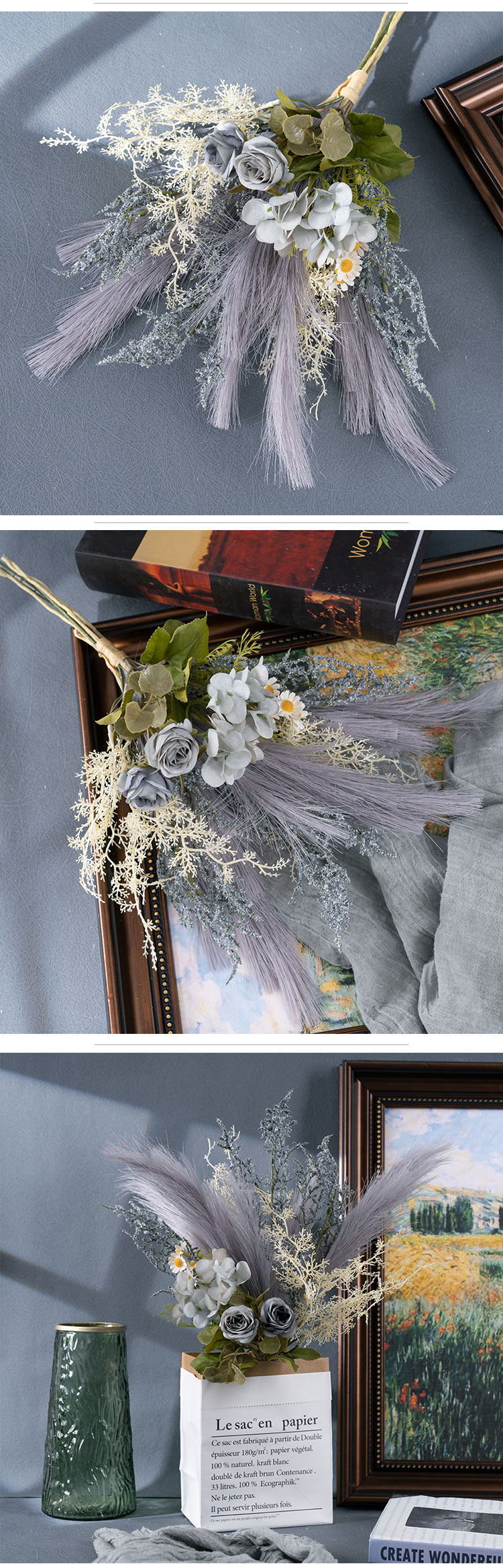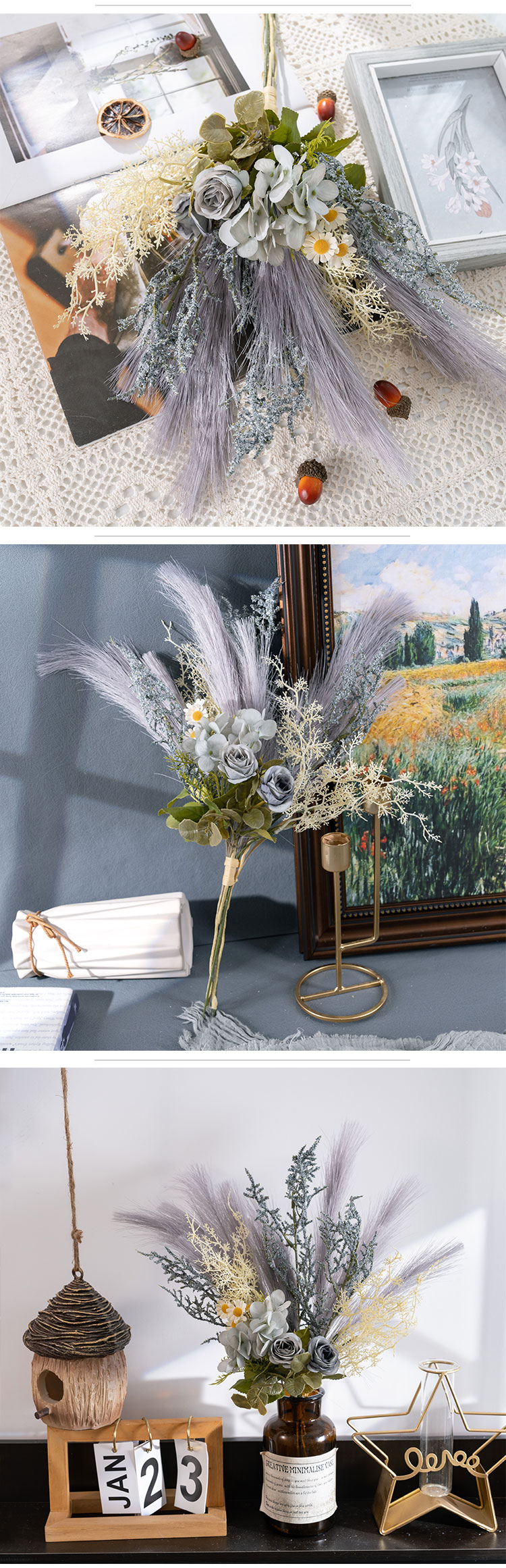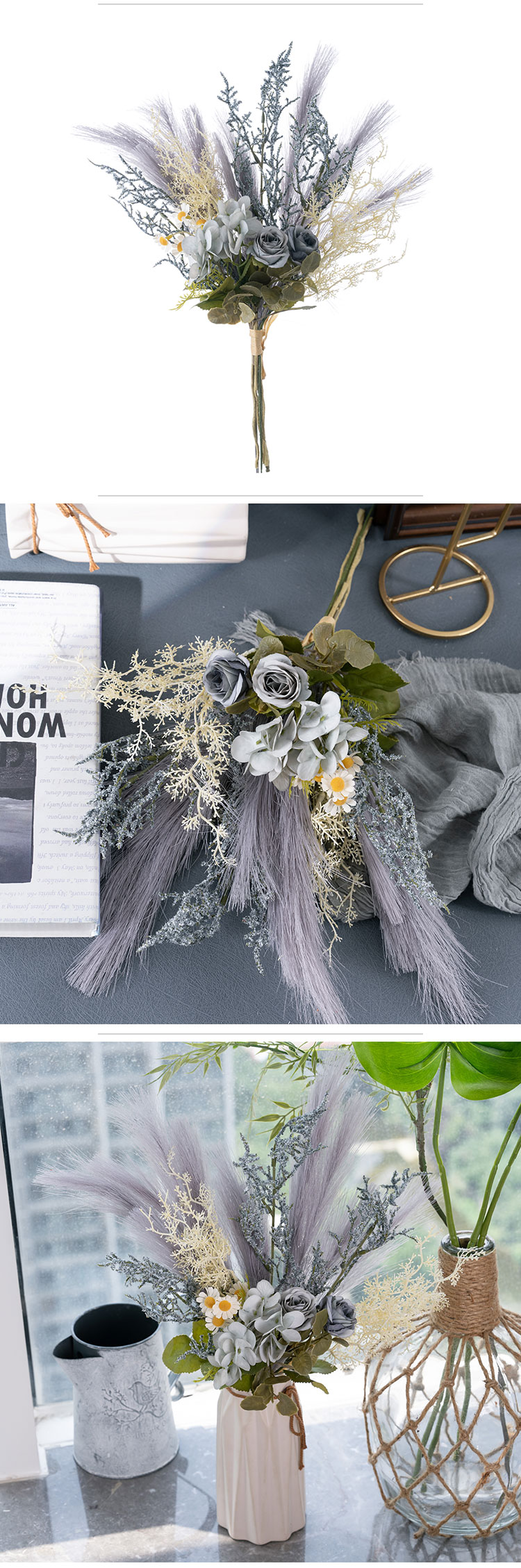CF01325 പുതിയ വരവ് വർണ്ണാഭമായ സിൽക്ക് ലാർജ് കൃത്രിമ പമ്പാസ് ഹൈഡ്രാഞ്ച റോസ് പ്ലാസ്റ്റിക് ഗ്രാസ് ആസ്റ്റിൽബെ ബണ്ടിൽ വിവാഹ ക്രിസ്മസിന്