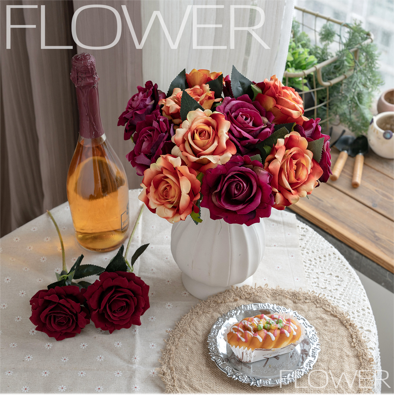 MW03336 Artificial Roses Short Stem Wedding Floral flower Home Office Decoration