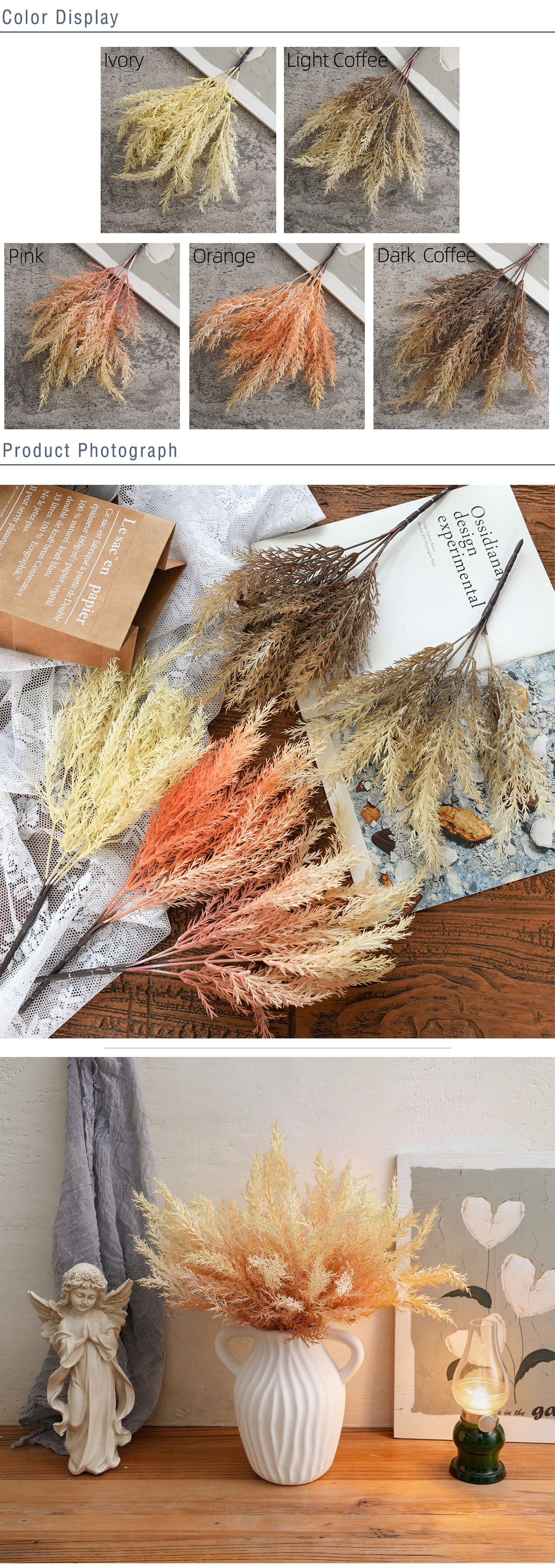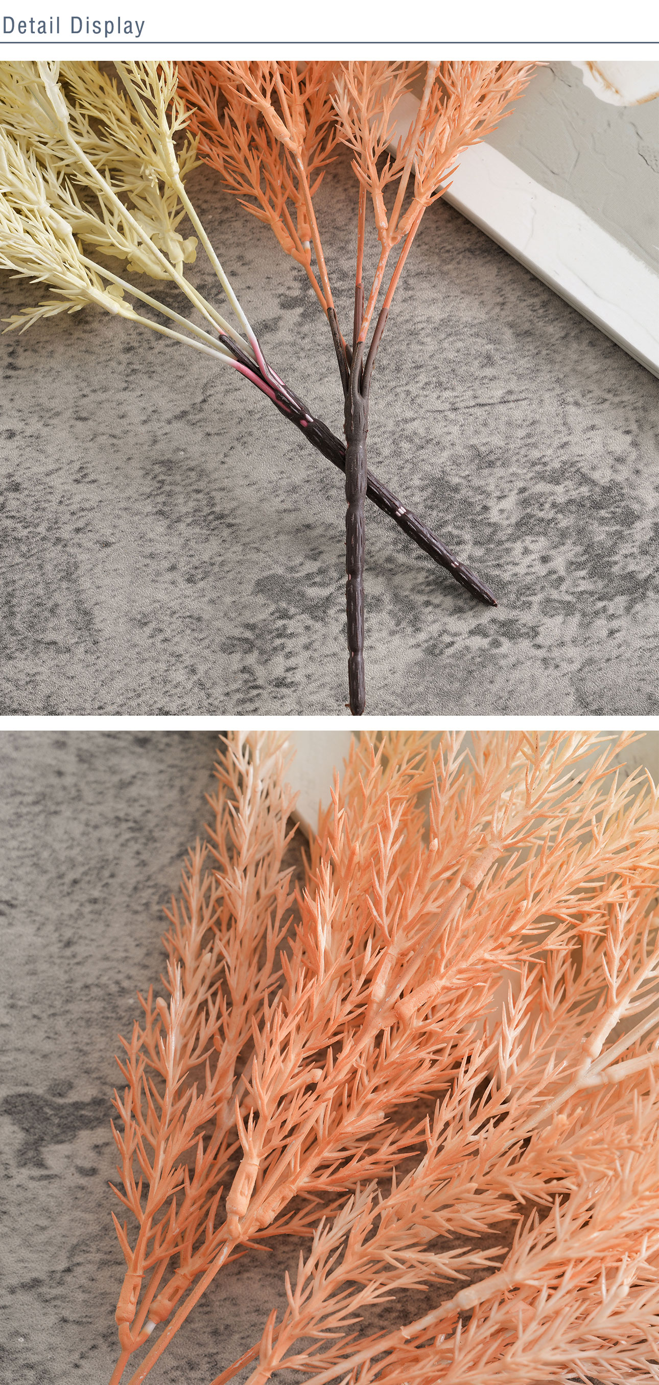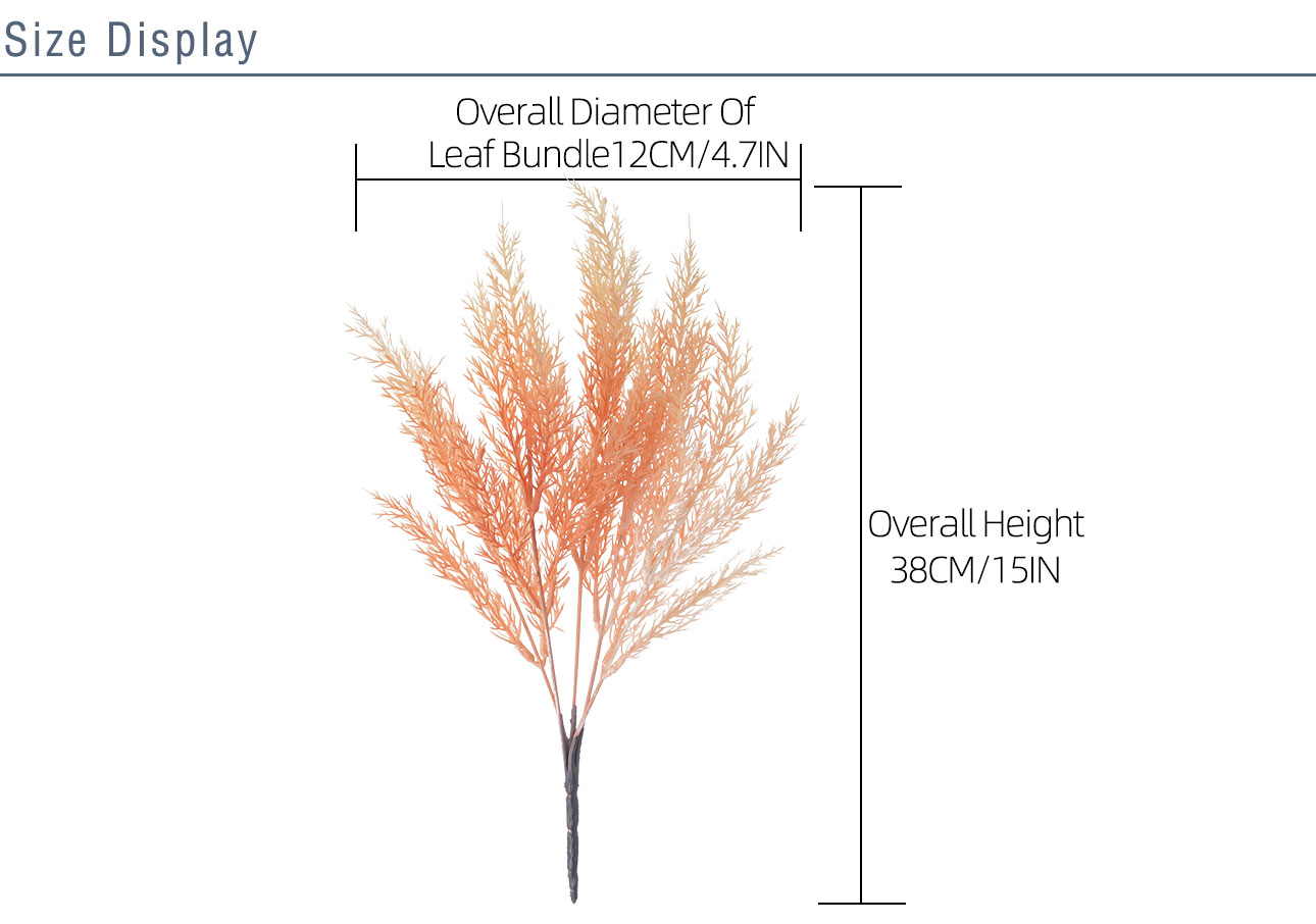 Whether you want to add a pop of color to your living room or create a cozy atmosphere in your bedroom, these bunches are perfect for any occasion.The technique used to make these bunches is a combination of handmade and machine craftsmanship. This ensures that each bunch is unique and meticulously crafted.These Pine needles bunches are suitable for various occasions, including home decoration, room decoration, bedroom decoration, hotel decoration, hospital decoration, shopping mall decoration, wedding decoration, company decoration, outdoors decoration, photographic prop, exhibition hall decoration, and supermarket decoration.