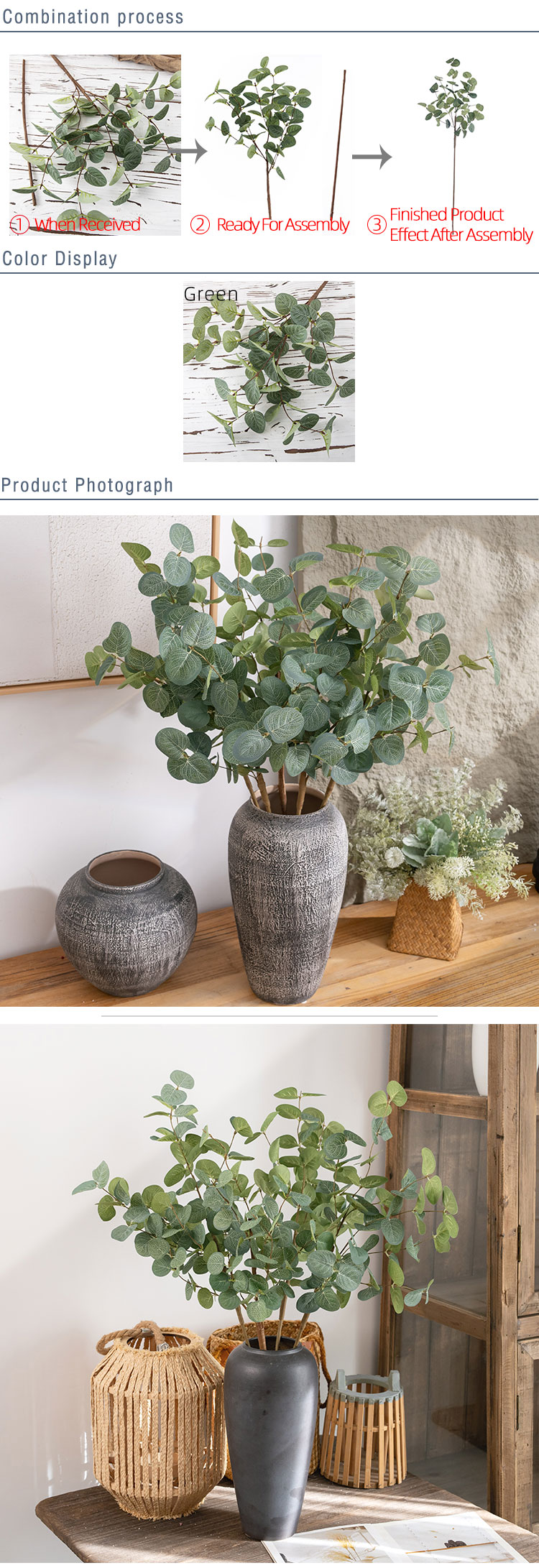 MW61216 Artificial Plant Eucalyptus Single Branch Removable Stem Hot Selling Decorative Flowers and Plants