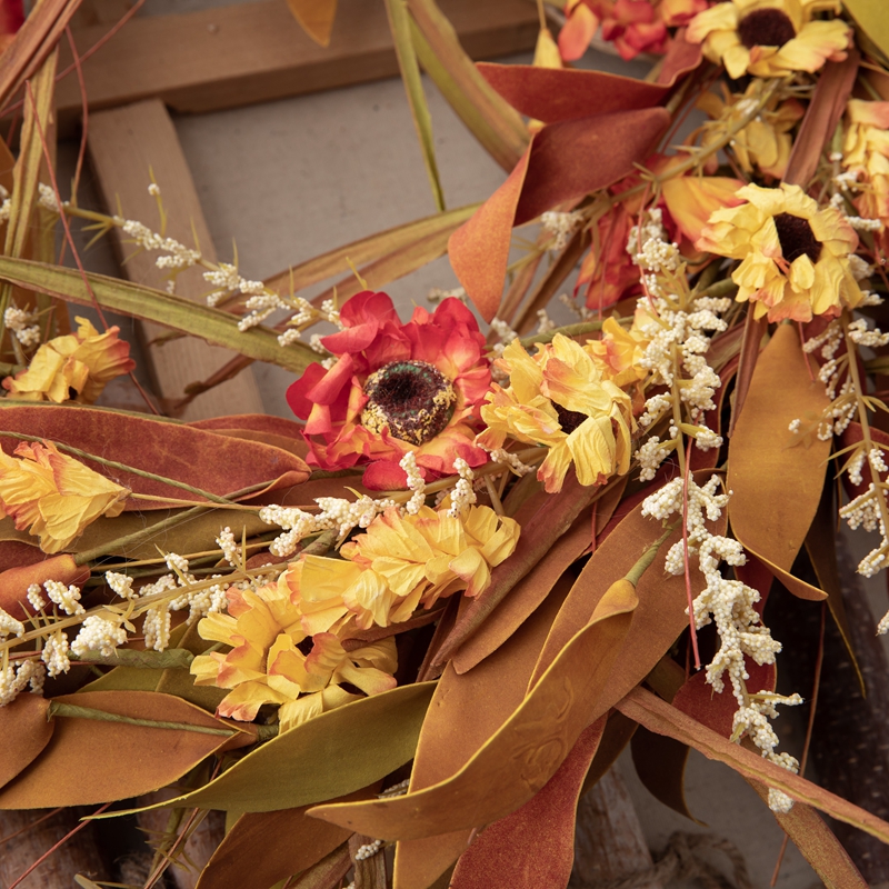 Crafted with precision and care from a blend of plastic, foam, twigs, and hand-wrapped paper, this wreath exudes a warmth and authenticity that is both captivating and enduring. The intricate details, from the realistic texture of the reed leaves to the delicate petals of the small wild chrysanthemums, are a testament to the artisan’s eye for detail and passion for their craft.