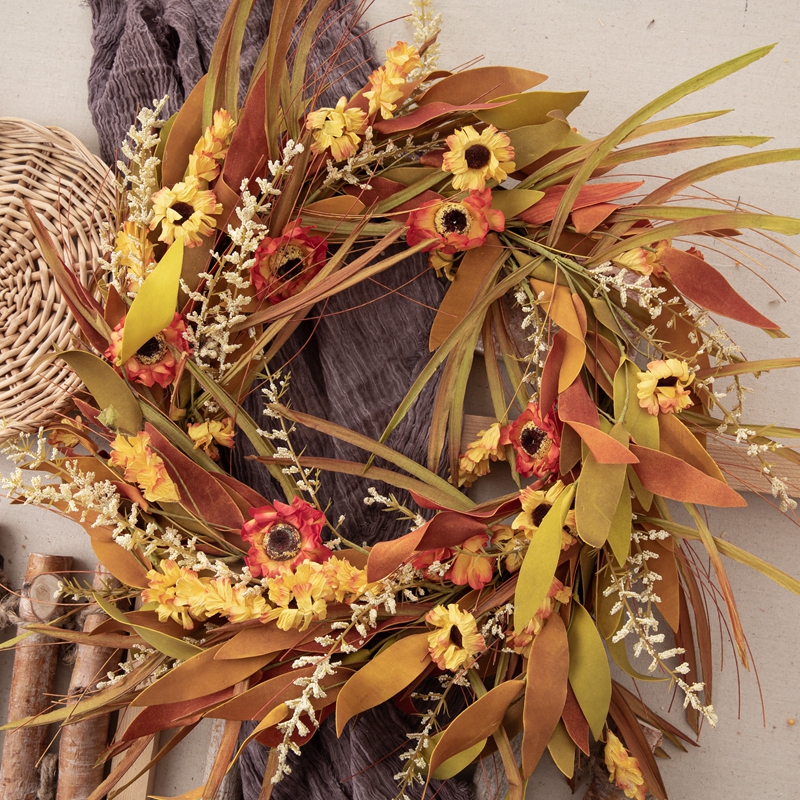 In conclusion, the Autumn Reed Leaves Small Wild Chrysanthemum Wreath, Item No. MW61530, is not just a decorative piece; it’s a bearer of beauty, a symbol of autumn’s bounty, and a testament to the skill and dedication of our artisans. Let it bring the warmth and joy of autumn into your home and make every moment a celebration.