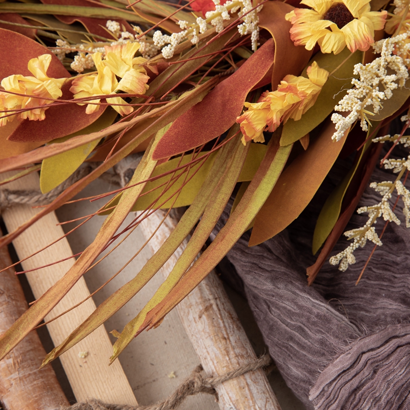The CALLAFLORAL brand, renowned for its excellence and innovation, proudly presents this Autumn Reed Leaves Small Wild Chrysanthemum Wreath. Originating from the lush landscapes of Shandong, China, our products are crafted with the utmost care and attention to detail. We are ISO9001 and BSCI certified, guaranteeing the highest standards of quality and safety.
