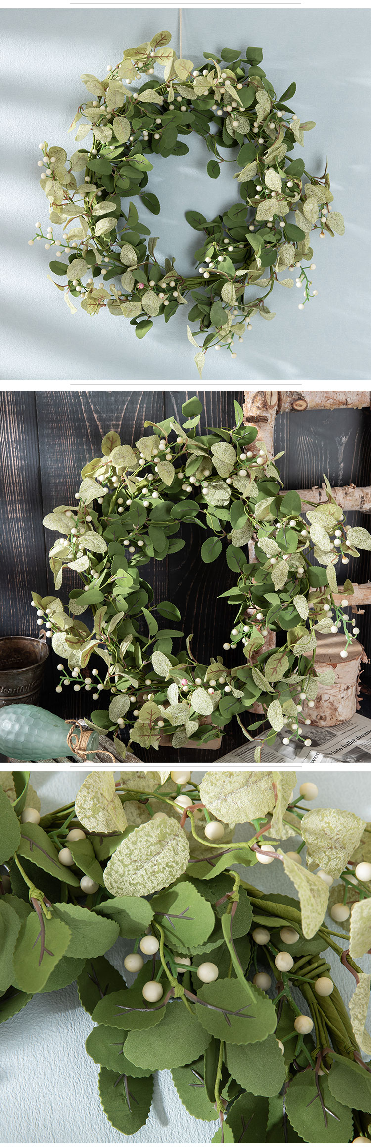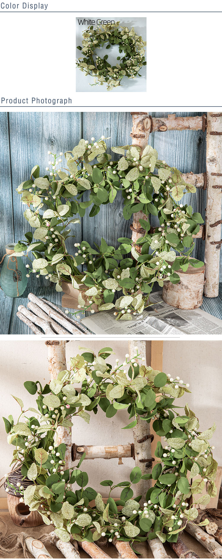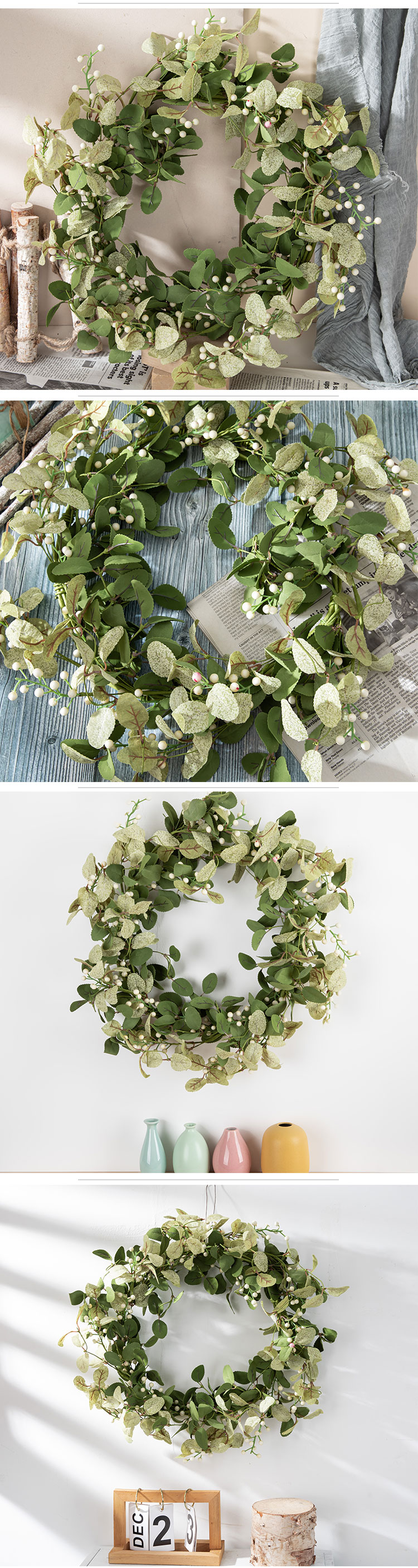 MW61888 Artificial Berry Apple Leaf Garlands White Green Wall Decoration Spring Greenery Wreaths for Wedding Home Hotel Decor