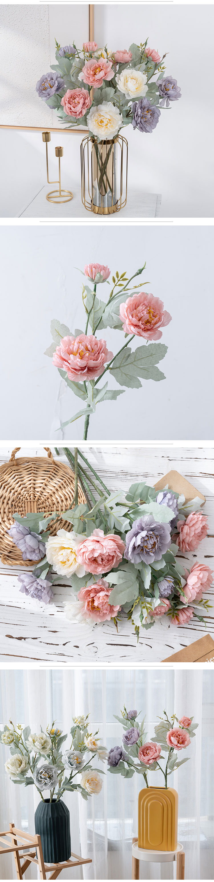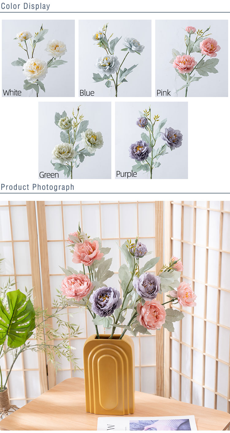 MW64234 Large Silk Artificial Pink Peony Arrangement Three Flowers Bridal wedding flower Bouquet