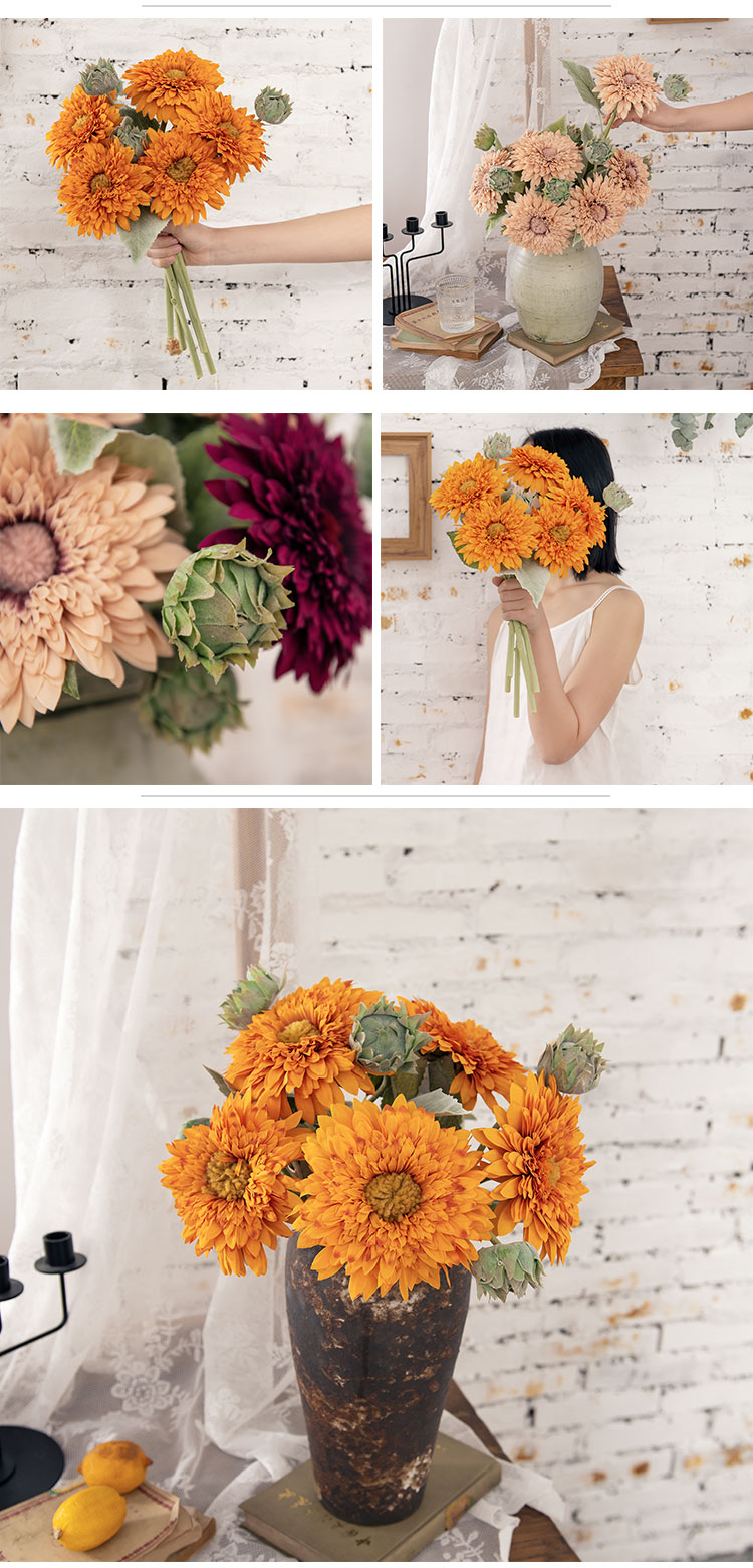 MW80001 Artificial Flower Sunflower Factory Direct Sale Decorative Flower Garden Wedding Decoration