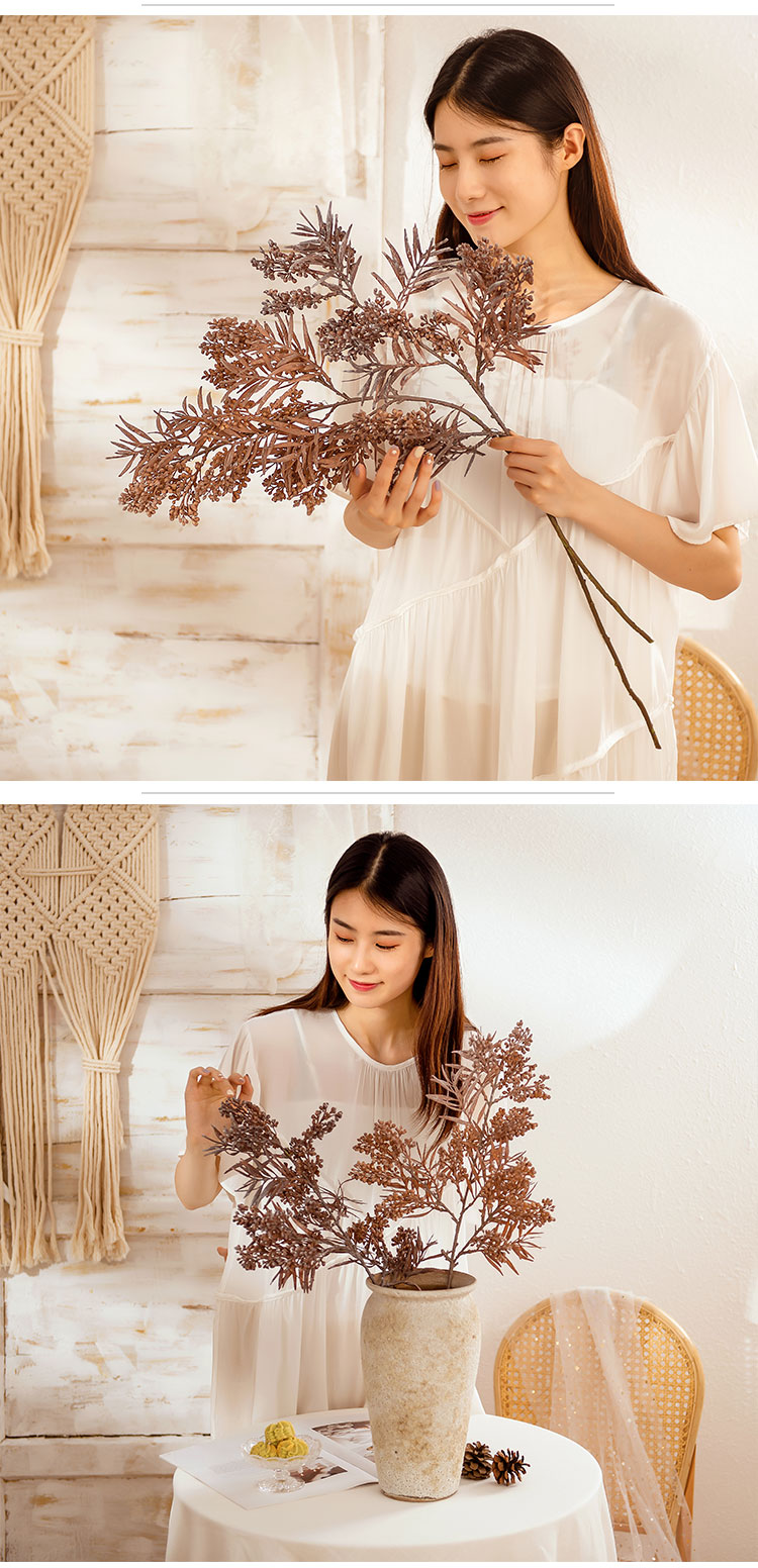 MW82106 Artificial Flower Plant Single Long Stem Pine Leaf Fruit Wholesale Decorative Flowers and Plants