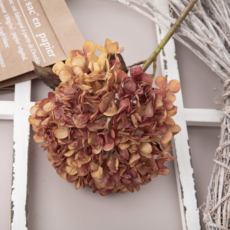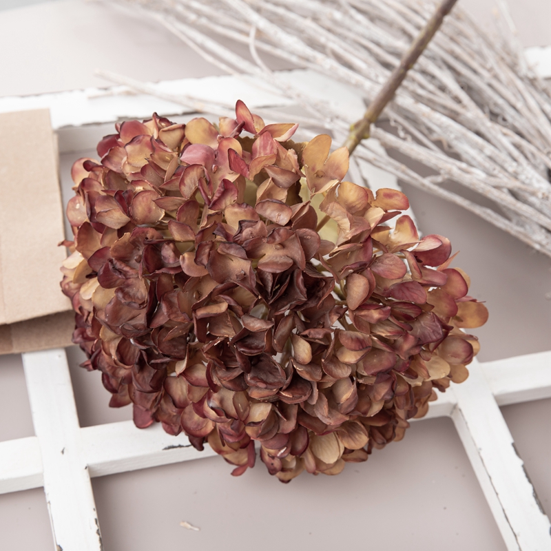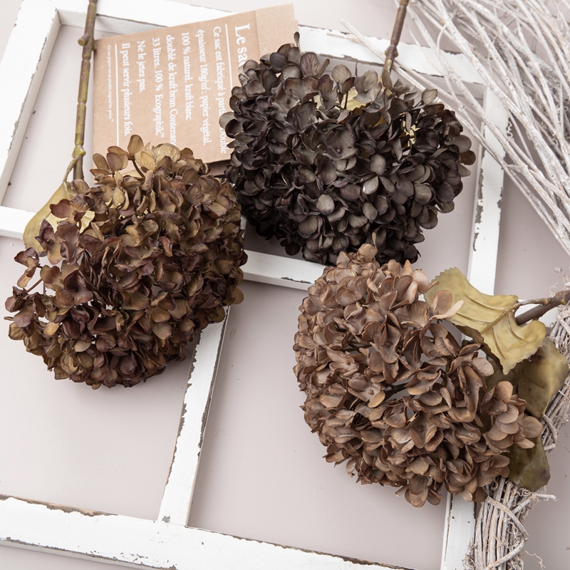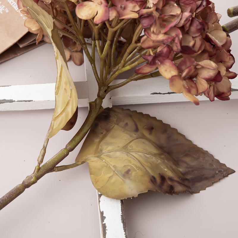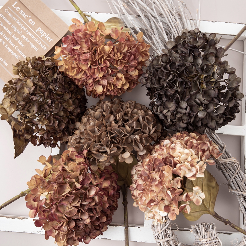 Available in a range of rich and vivid colors, including dark brown, purple, and dark blue, these flowers are perfect for any occasion. Whether it’s Valentine’s Day, Christmas, Easter, or just a regular day, these hydrangeas are sure to impress. Not only do these flowers look great, but they’re also durable, ensuring a long-lasting decoration that will stay beautiful for years to come. Each branch consists of one flower head and two leaves, making them easy to arrange and create a stunning centerpiece.