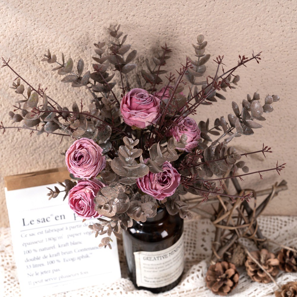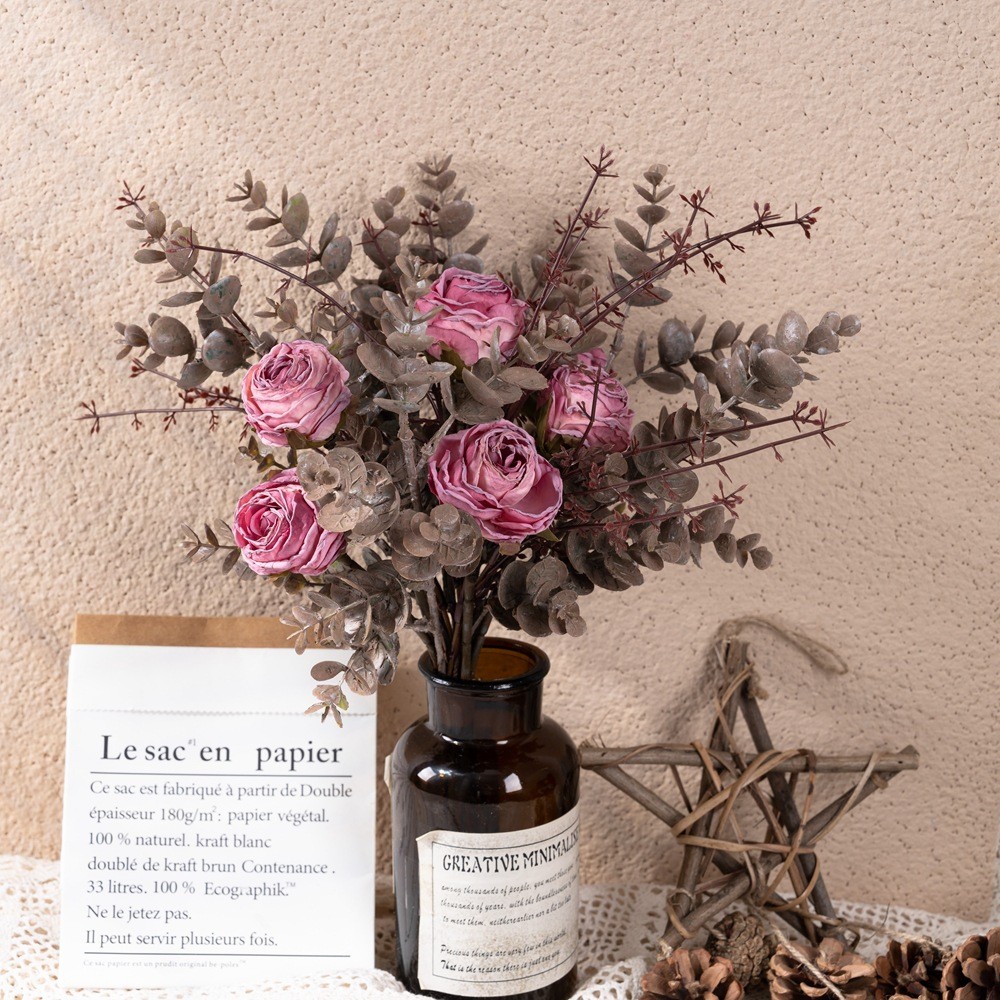 ခြောက်သွေ့စွာလောင်ကျွမ်းထားသော နှင်းဆီယူကလစ်ပင်များကို ဂရုတစိုက်ရွေးချယ်ထားသော ပစ္စည်းများနှင့် နည်းပညာများဖြင့် ပြုလုပ်ထားသည်။ ခြောက်သွေ့စွာလောင်ကျွမ်းစေသော လုပ်ငန်းစဉ်သည် ပန်းများကို ရှေးဟောင်းအသွင်အပြင်ကို ပေးစွမ်းပြီး ရှေးဟောင်းလေသံကို ယူဆောင်လာကာ အိမ်ကို တိတ်ဆိတ်ငြိမ်သက်မှုနှင့် ကြော့ရှင်းသော အသွင်အပြင်ကို ထည့်သွင်းပေးသည်။ ဧည့်ခန်းထောင့်ရှိ ပန်းအိုးထဲတွင် ရှေးဟောင်းပရိဘောဂများနှင့်အတူ ထားရှိခြင်းဖြင့် နေရာတစ်ခုလုံးကို ပိုမိုရှေးကျစေသည်။ ခြောက်သွေ့စွာလောင်ကျွမ်းထားသော နှင်းဆီယူကလစ်ပင်များကို အတုယူခြင်းသည် ထုပ်ပိုးမှု၏အရောင်ကို အိမ်၏အလှဆင်ပုံစံနှင့် ပြီးပြည့်စုံစွာ ပေါင်းစပ်ထားပြီး နေရာကို ရိုမန်းတစ်နှင့် နွေးထွေးမှုအပြည့်ဖြစ်စေသည်။ ထုပ်ပိုးမှု၏အမြင့်ကို ကိုယ်ပိုင်နှစ်သက်မှုအလိုက် ချိန်ညှိနိုင်သောကြောင့် ပန်းများနှင့် အိမ်တွင်းဒြပ်စင်များသည် ပြီးပြည့်စုံစွာ လိုက်ဖက်ညီပြီး ကိုယ်ပိုင်အနုပညာအရသာကို ပေါ်လွင်စေသည်။