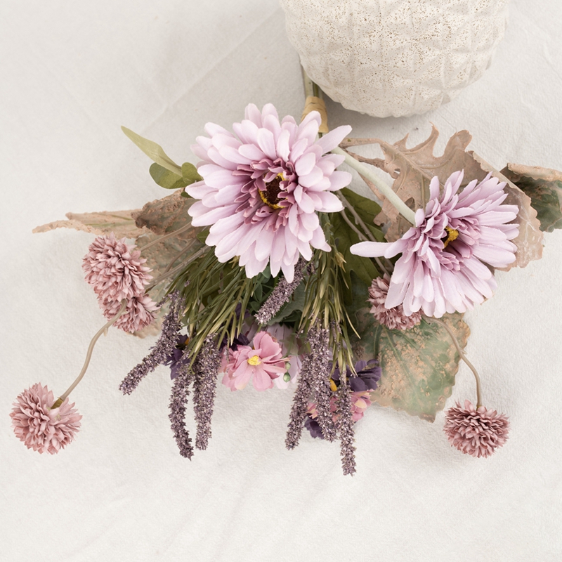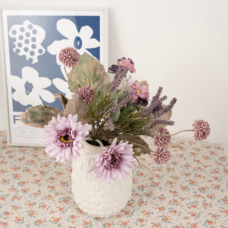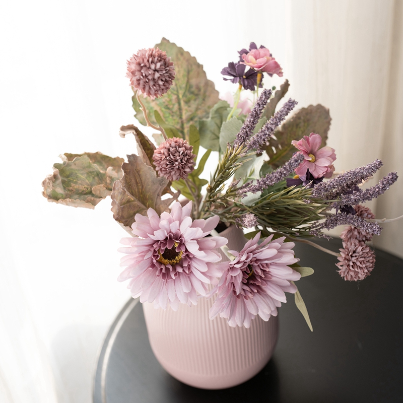 In the world of floral art, some flowers and plants inherently possess a sense of temporal span and spatial connection. They are not merely products of nature but also bear the weight of culture and emotion. The combination of the daisy-like flower and the leaf bunch is precisely such a symbol that transcends time and space. Skillfully intertwining the retro natural charm with the minimalist design of modern floral art, it creates an aesthetic effect that is both classic and fashionable, endowing traditional flowers with new life and new meaning.