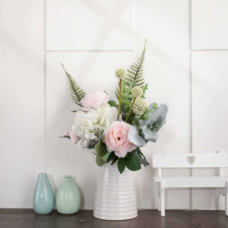 Select high-quality imitation materials to meticulously reproduce the true texture of each petal and leaf. The shape of the European rose is full and round, with gentle and fresh colors, resembling an unspoken and heartfelt declaration; the silver-leaved daisy uses its finely curled leaves to outline the distinct contours of the bouquet, adding a touch of quiet tenderness to the overall appearance; and the presence of eucalyptus leaves is like a touch of free-spirited embellishment, bringing a sense of breathability and spatiality, making the entire bouquet more full of life and rhythm.