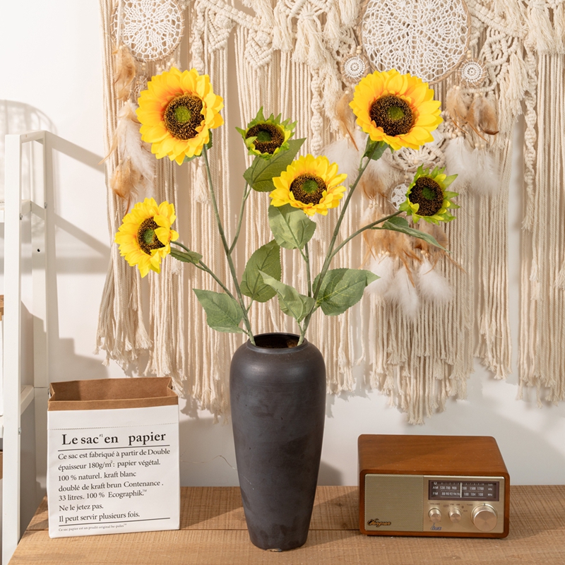 The meticulous craftsmanship of the artisan has made it different from ordinary artificial flowers, giving it a more natural and lively appearance. The branches are not the monotonous green plastic, but are covered with a material that imitates plant fibers, as if they were just picked from the fields.This delicate texture enables it to radiate a warm feeling like the sunshine even when it is placed quietly. It seems as if bees will start buzzing around the flower disc in the next moment.